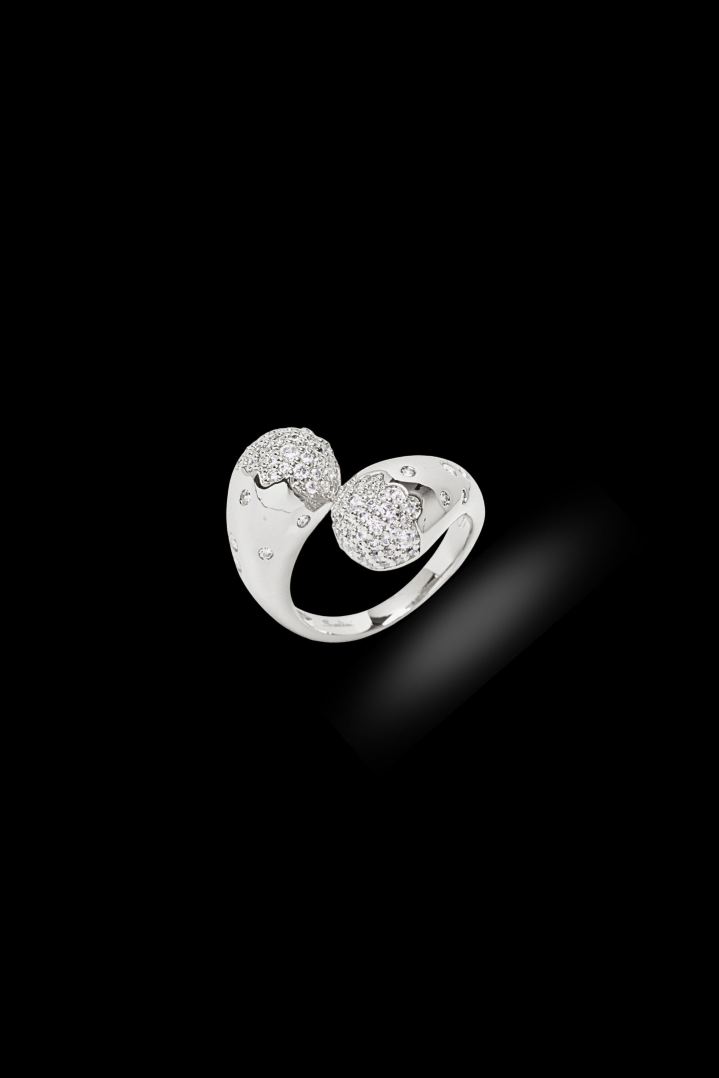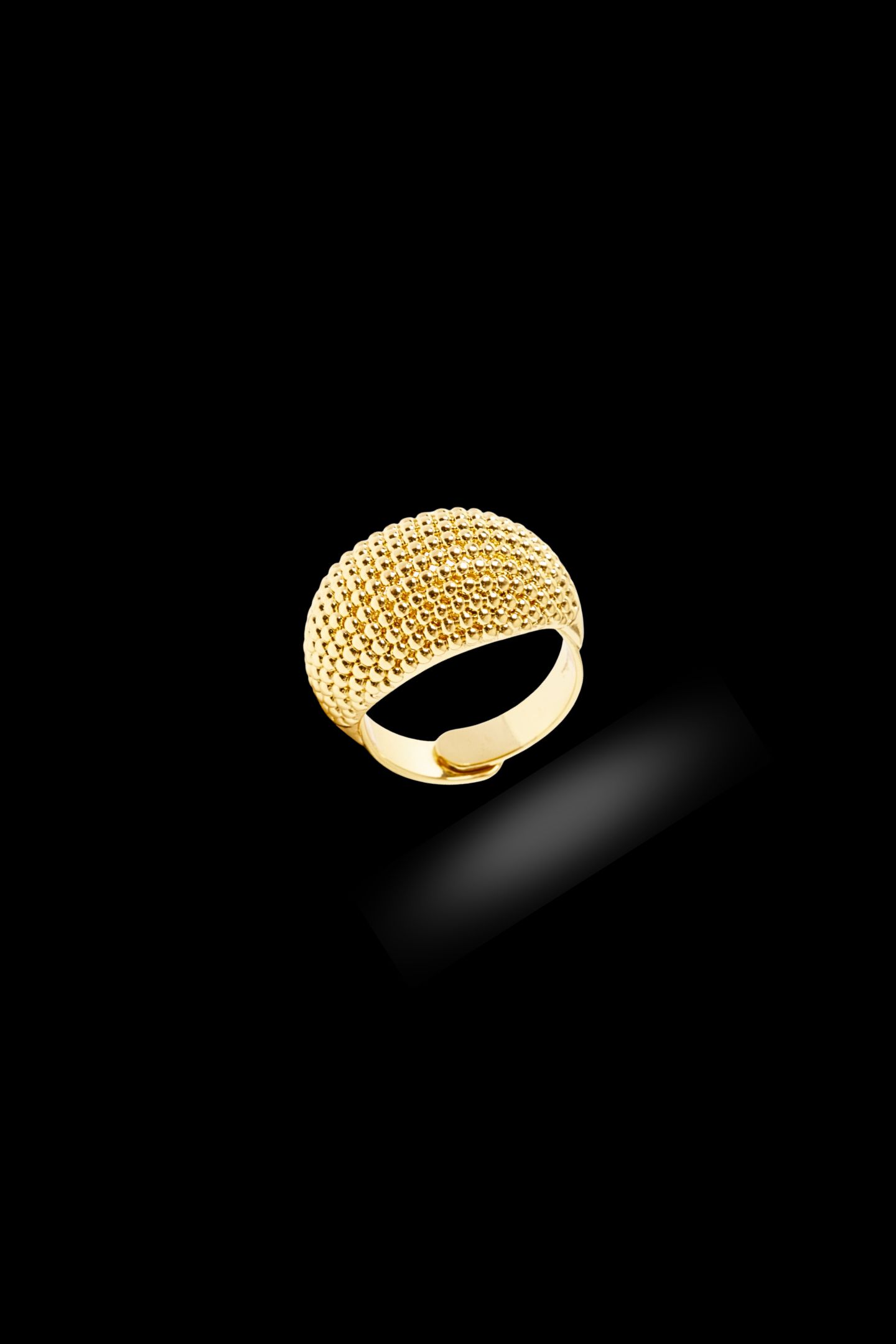• Ένα εκλεπτυσμένο ρυθμιζόμενο δαχτυλίδι που κοσμείται από  ένα λαμπερό τμηματικό 'τρούλο' στο πάνω μέρος, διακοσμημένο με μικροσφαιρικές χάντρες