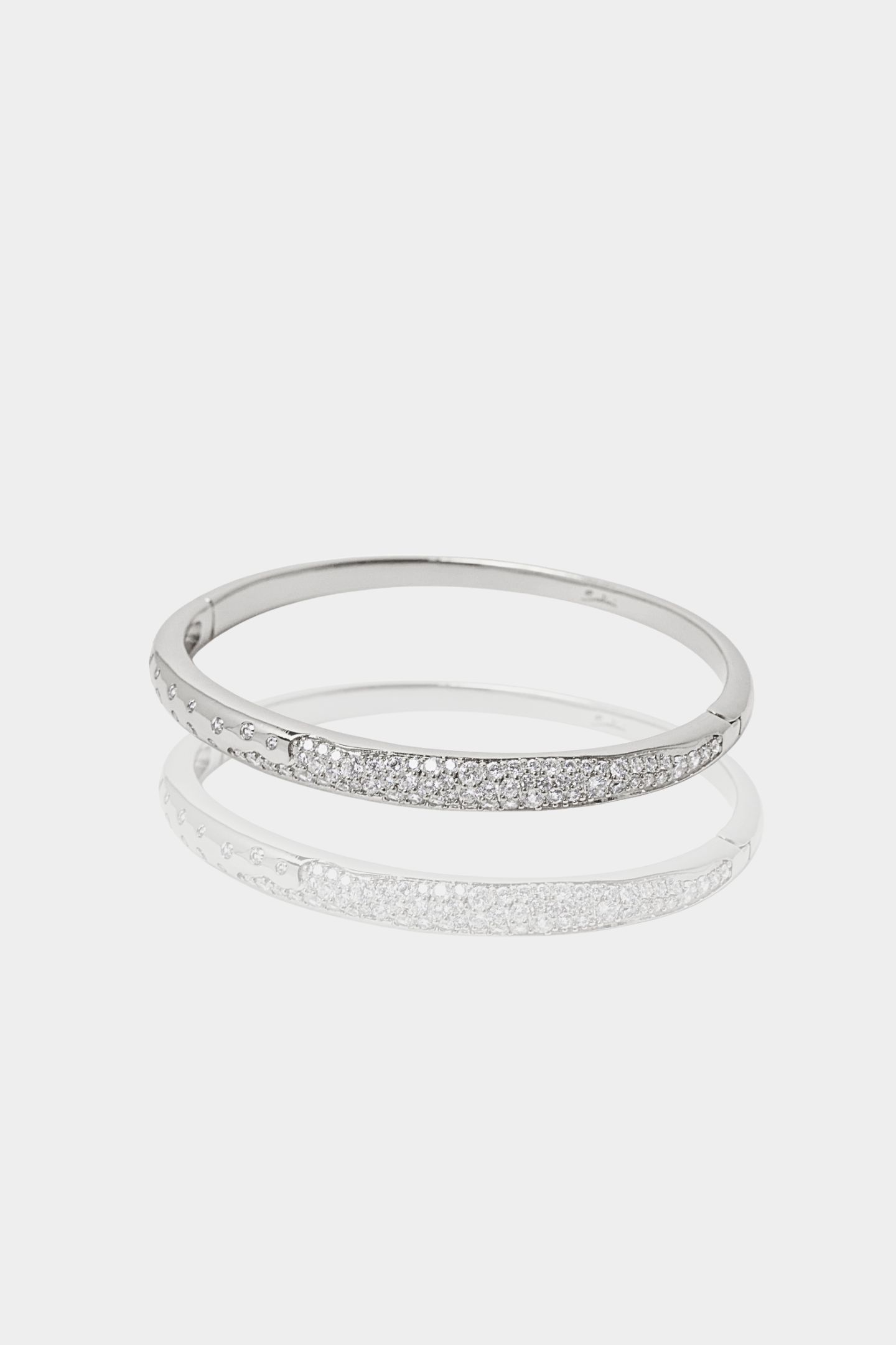 • Ο εντυπωσιακός σχεδιασμός του βραχιολιού περιλαμβάνει μια καμπύλη λωρίδα διακοσμημένη με πρωτότυπο ανάγλυφο μοτίβο και εκθαμβωτικά κρύσταλλα pavé, δημιουργώντας εντυπωσιακές αντανακλάσεις φωτός