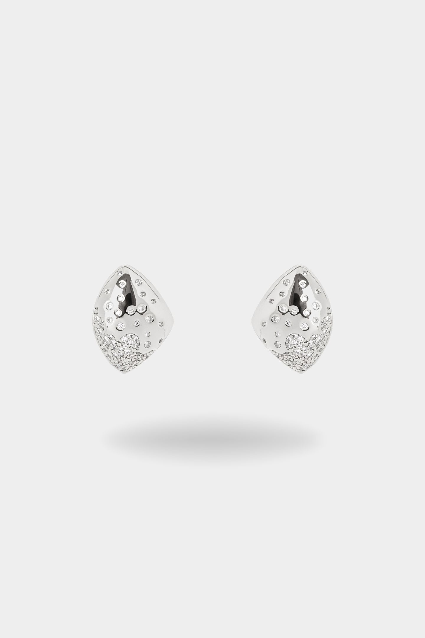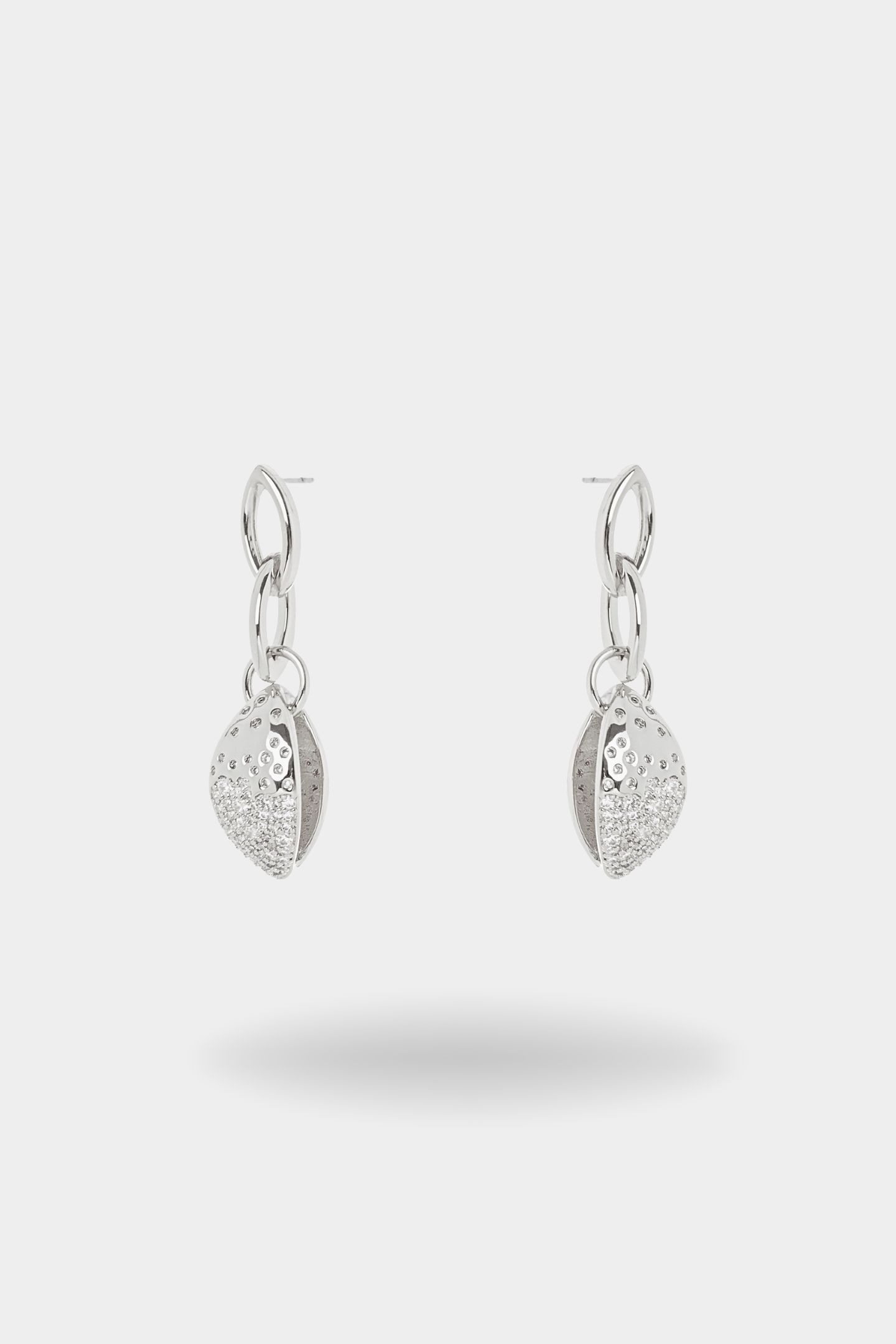 • Σκουλαρίκια με ιδιαίτερο τρισδιάστατο στοιχείο, διακοσμημένο με εκθαμβωτικά κρύσταλλα pavé