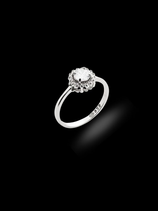 Δαχτυλίδι ροζέτα κατασκευασμένο από ασήμι 925 και λευκά ζιργκόν