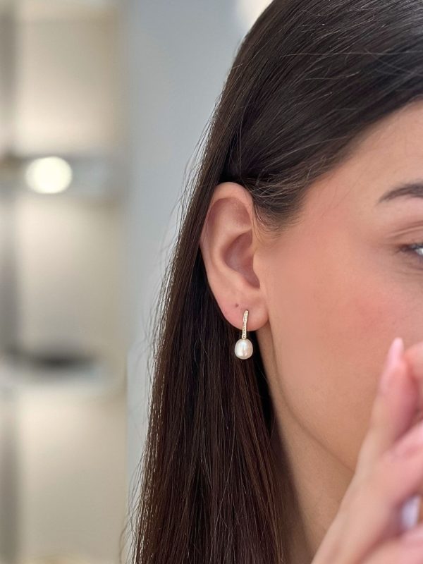- Σκουλαρίκι με λευκό μαργαριτάρι που κρέμεται διακριτικά κάτω από το αυτί
