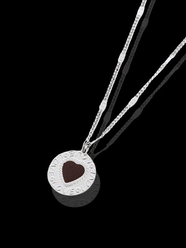 - Κοσμείται από μια πλακέ μπορντό καρδία στο κέντρο του και την λέξη 'LOVE" περιμετρικά