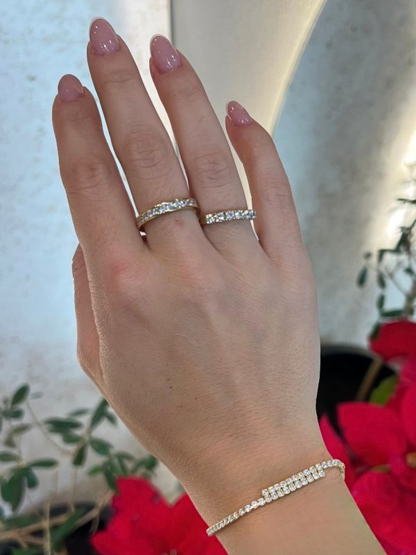 - Λαμπερό δαχτυλίδι, με λευκά λαμπερά ζιργκόν σε όλο το μήκος του και συρταρωτό δέσιμο