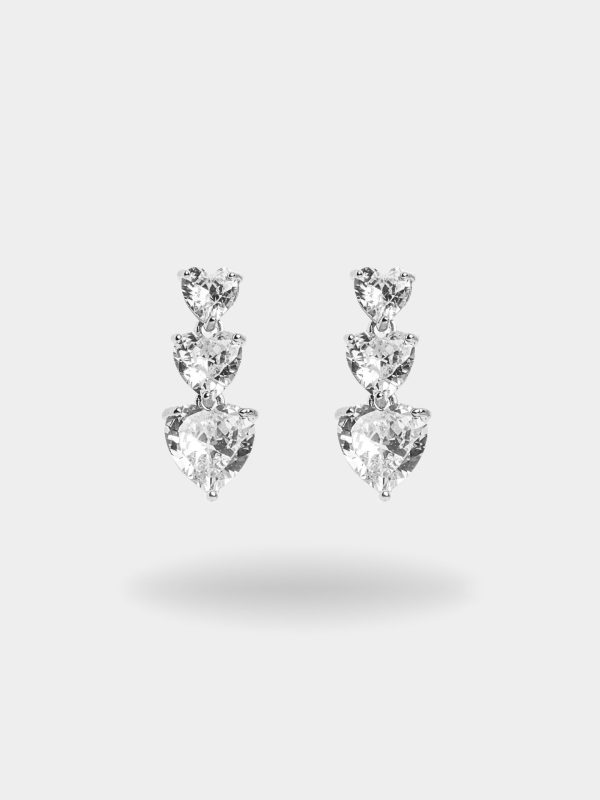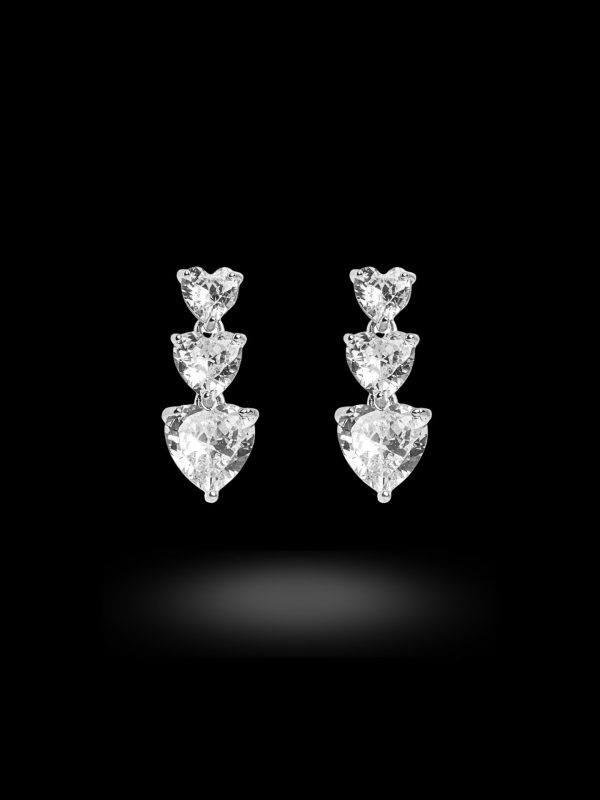 - Κρεμαστό σκουλαρίκι με τρεις κάθετες καρδιές και κούμπωμα πεταλούδα