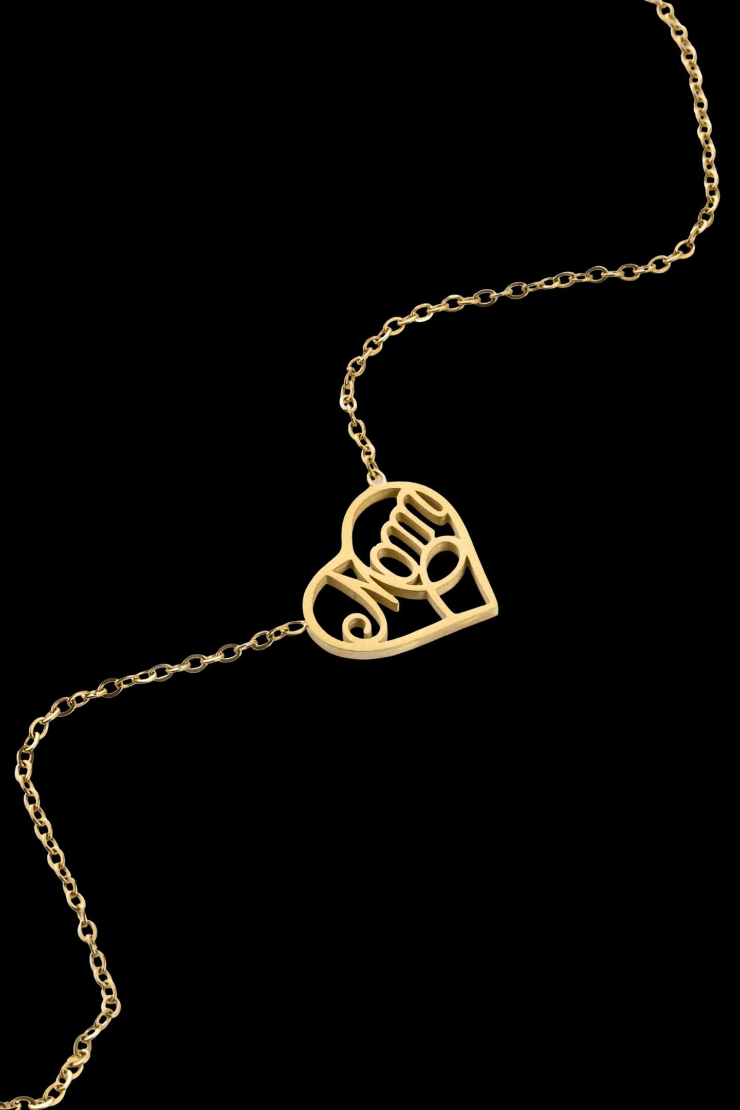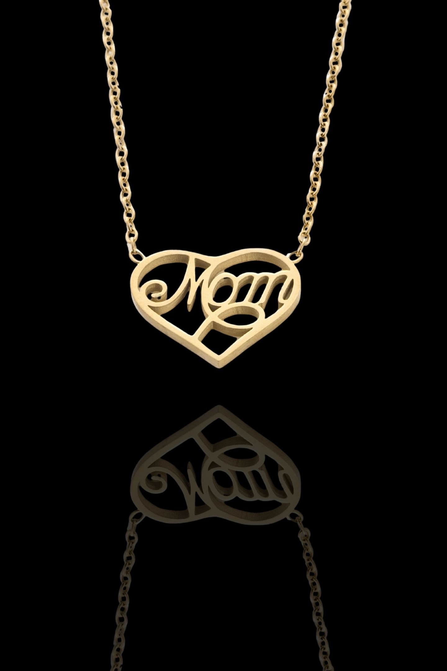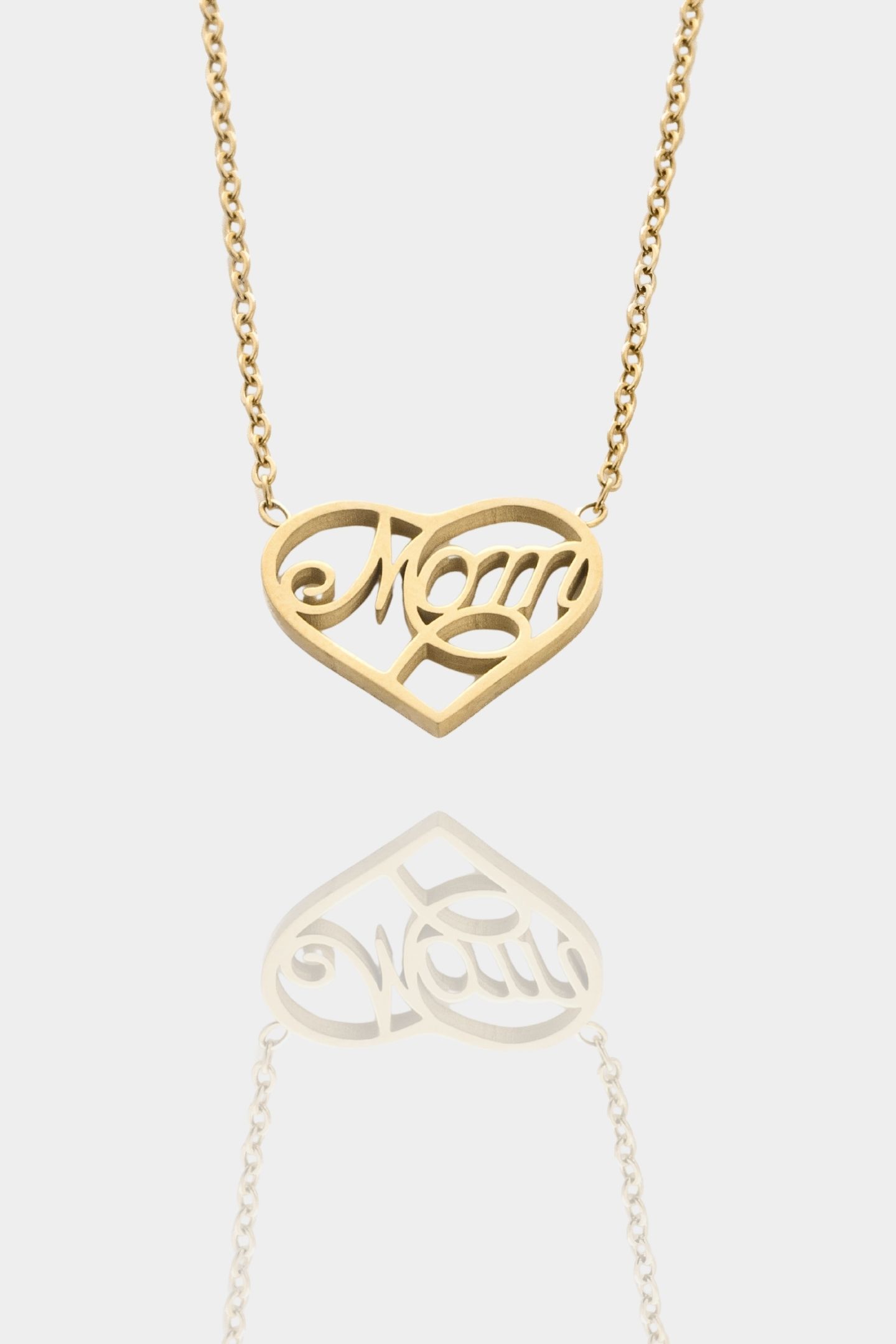 - Κολιέ με σταθερό, διάτρητο στοιχείο σε σχήμα καρδιάς και τη λέξη mom