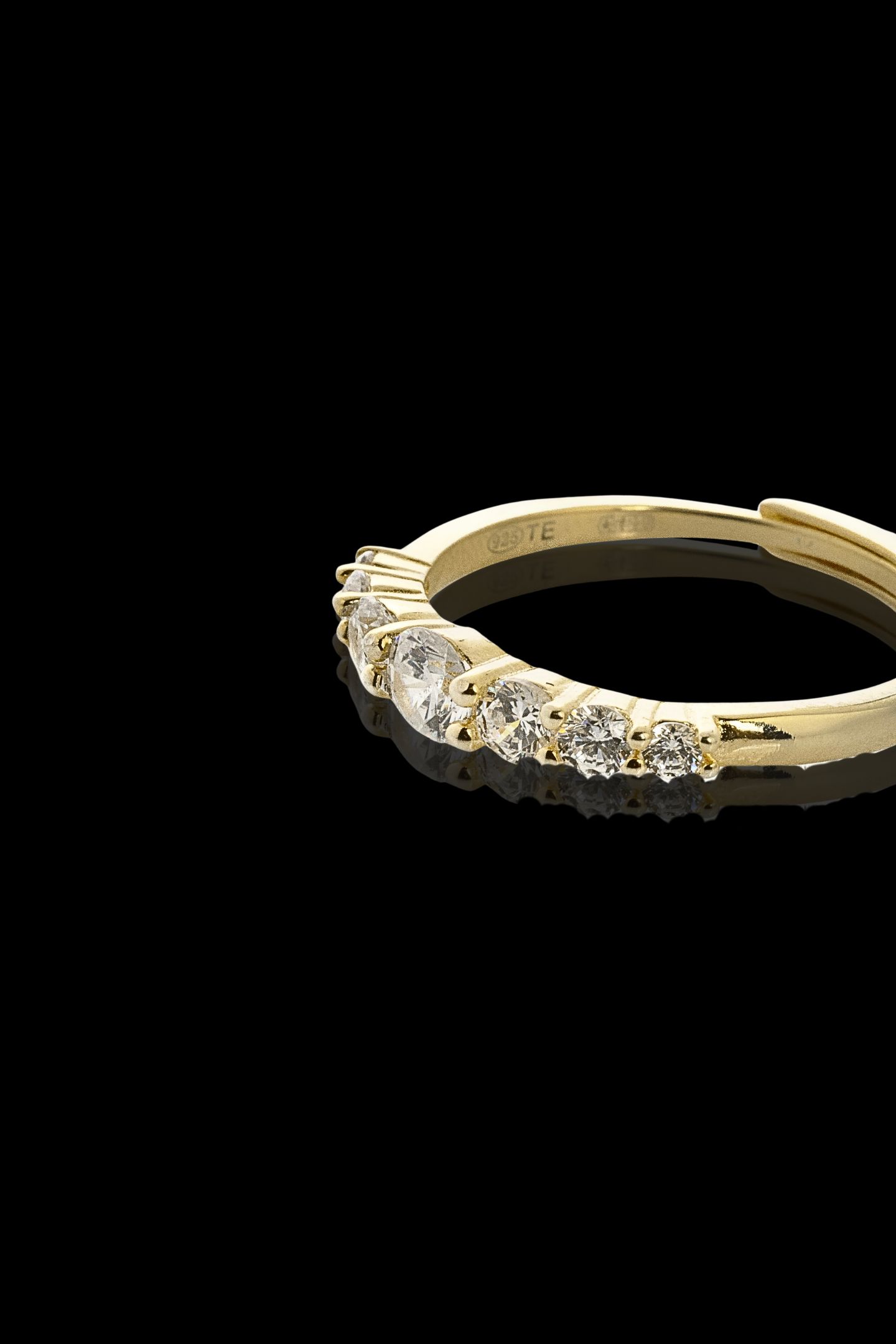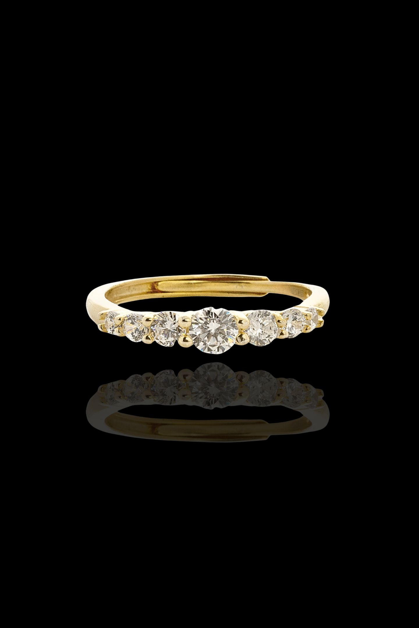 - Λαμπερό κόσμημα με ένα κυκλικό λευκό ζιργκόν στο κέντρο του και μικρότερα πλάγια του δαχτυλιδιού