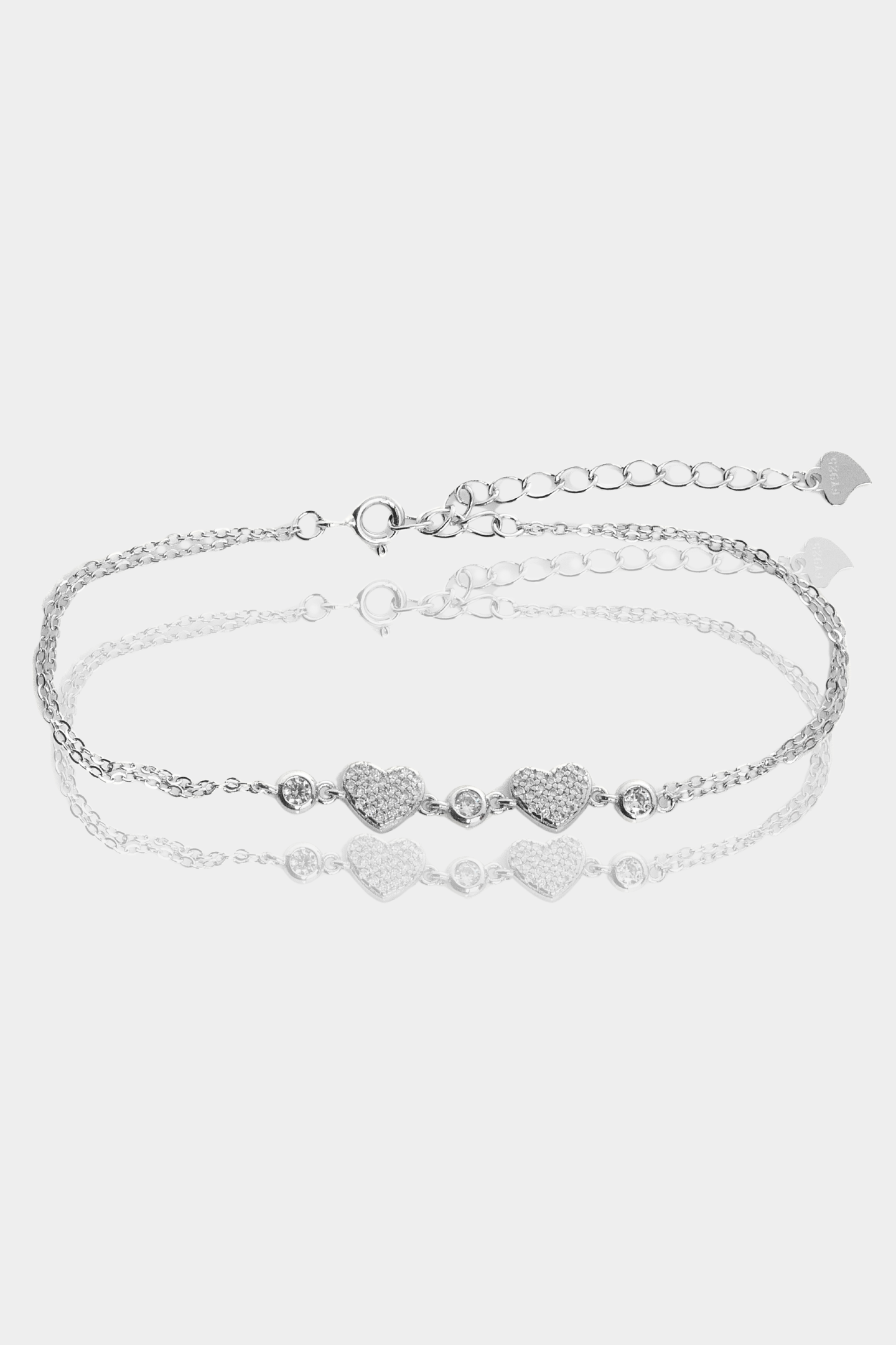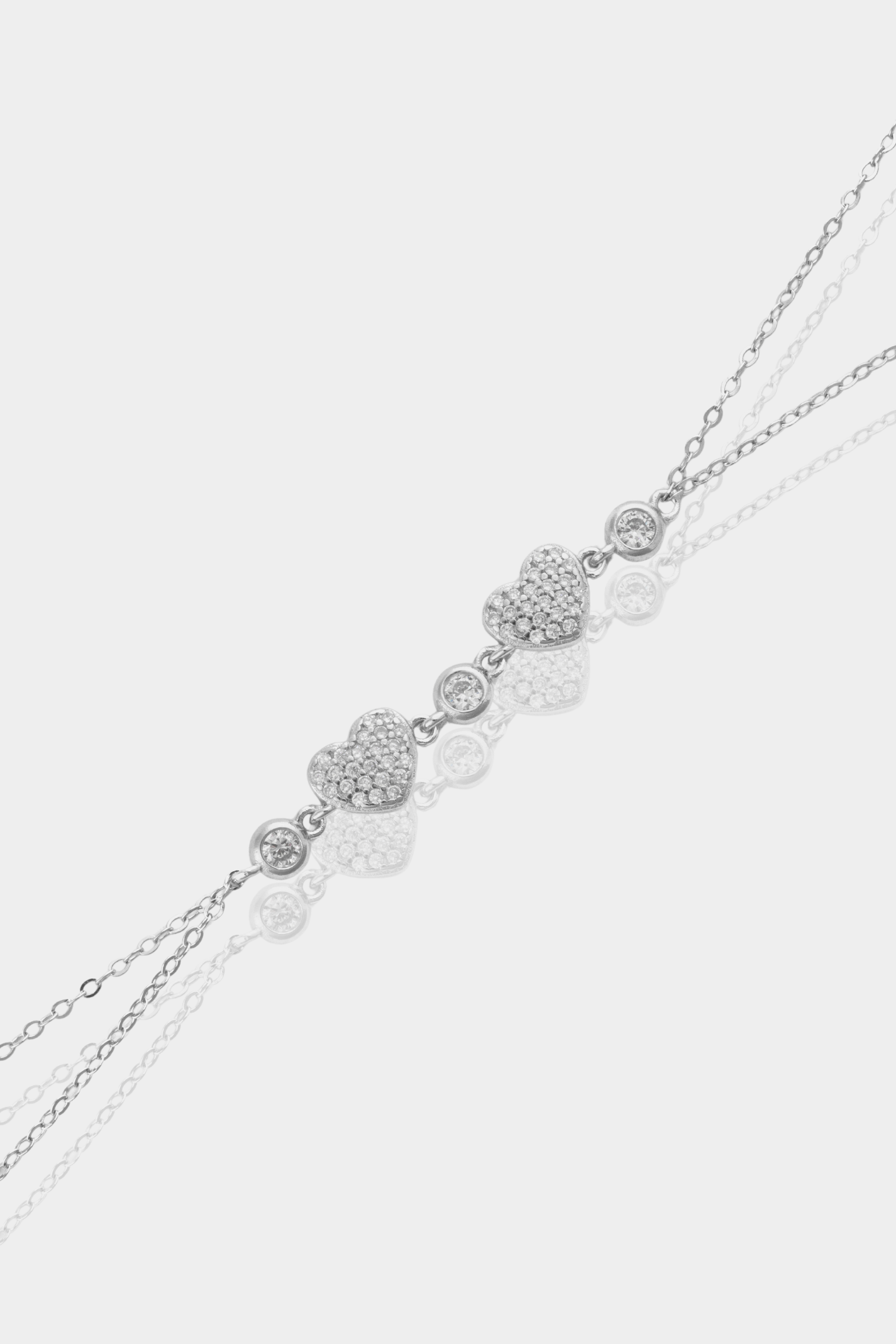 - Στο κέντρο του βραχιολιού υπάρχουν δυο καρδιές με ζιργκόν οι οποίες διαχωρίζονται με τρία κυκλικά ζιργκον