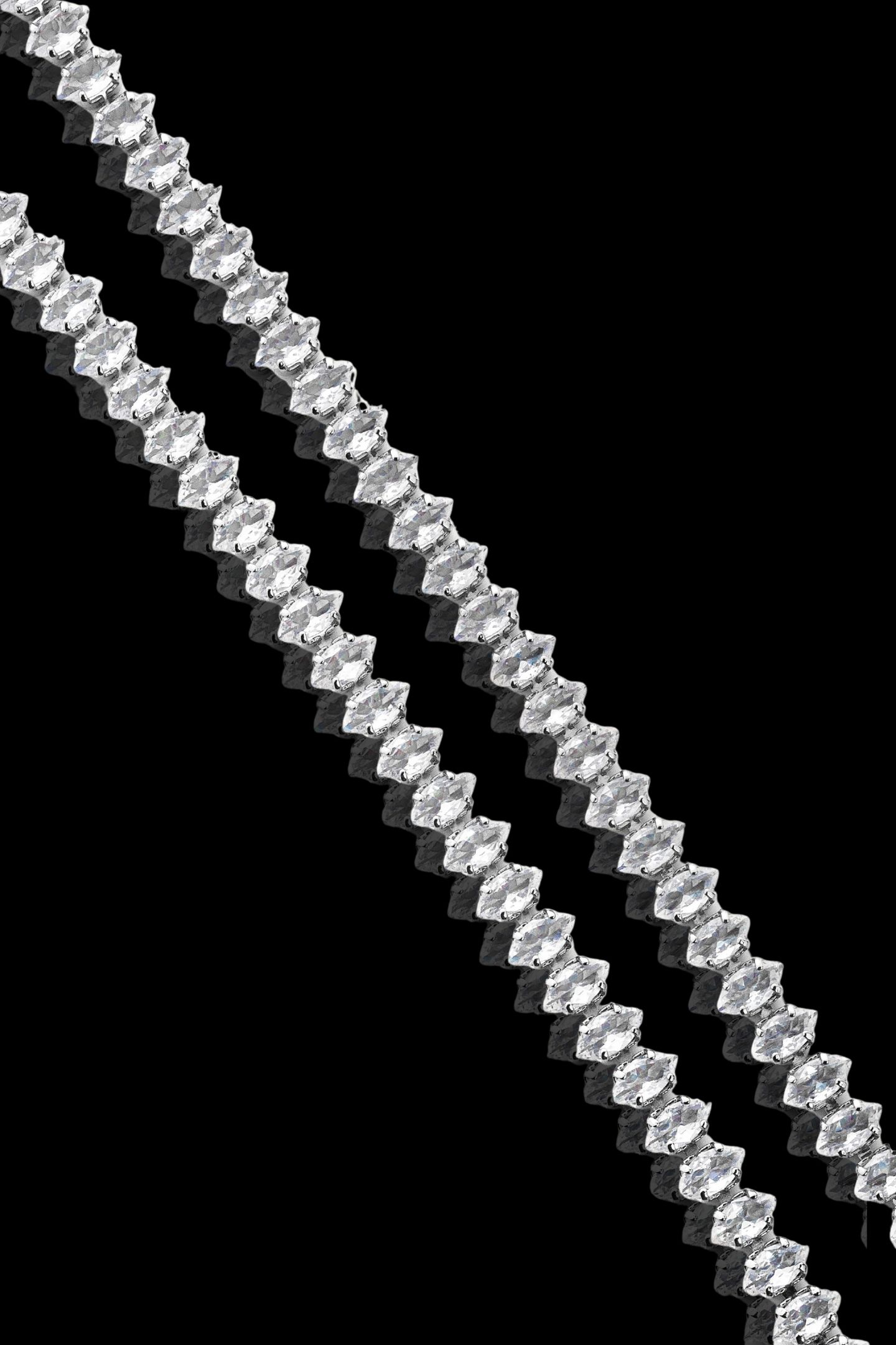 - Ασύμμετρο κολιέ με λαμπερά ζιργκόν που αγκαλιάζει τον λαιμό και μαγνητίζει τα βλέμματα