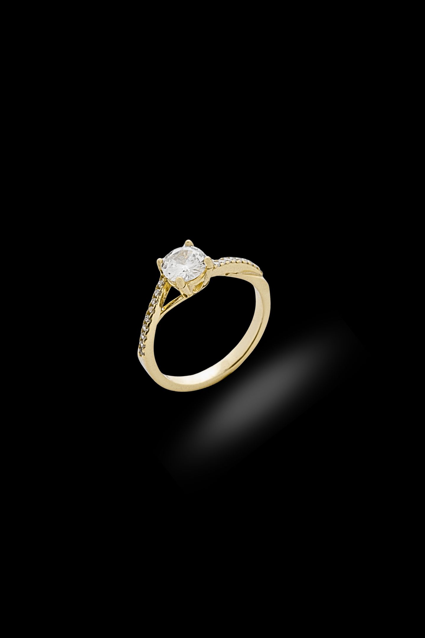 - Λαμπερό κόσμημα με ένα λευκό ζιργκόν στο κέντρο του και μικρότερα πλάγια του δαχτυλιδιού