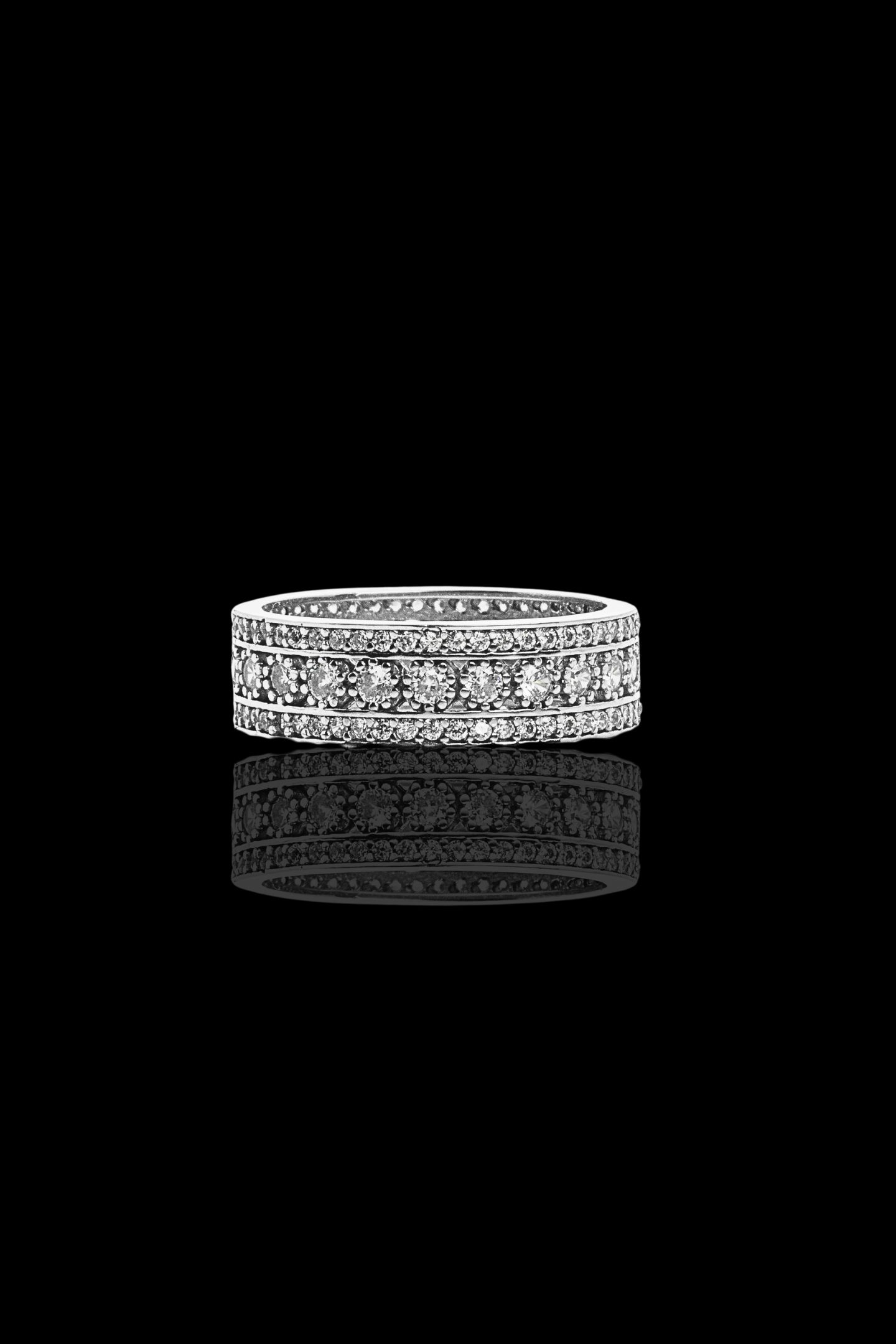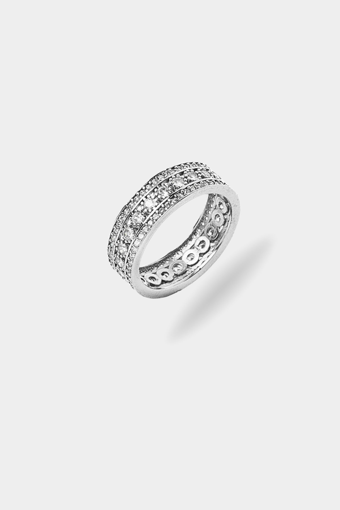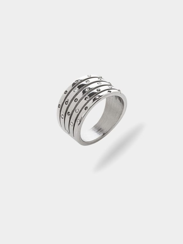 - Statement δαχτυλίδι, με λευκά λαμπερά ζιργκόν σε όλο το μήκος του