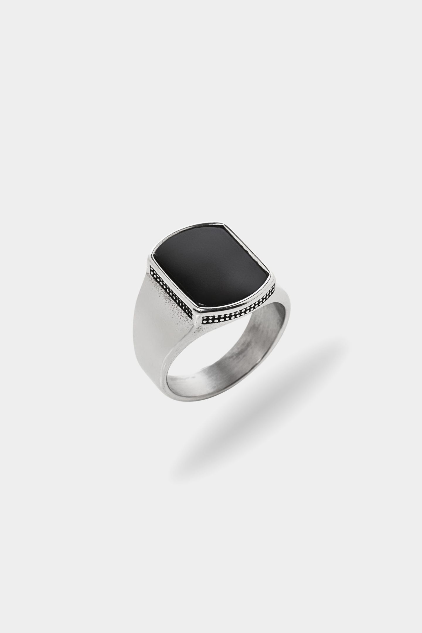 - Aνδρικό δαχτυλίδι με μαύρη πέτρα στο κέντρο