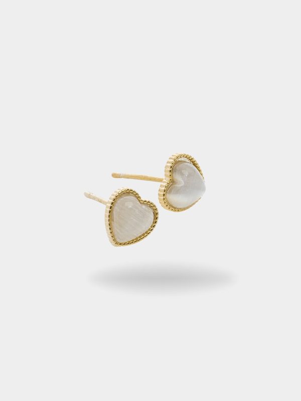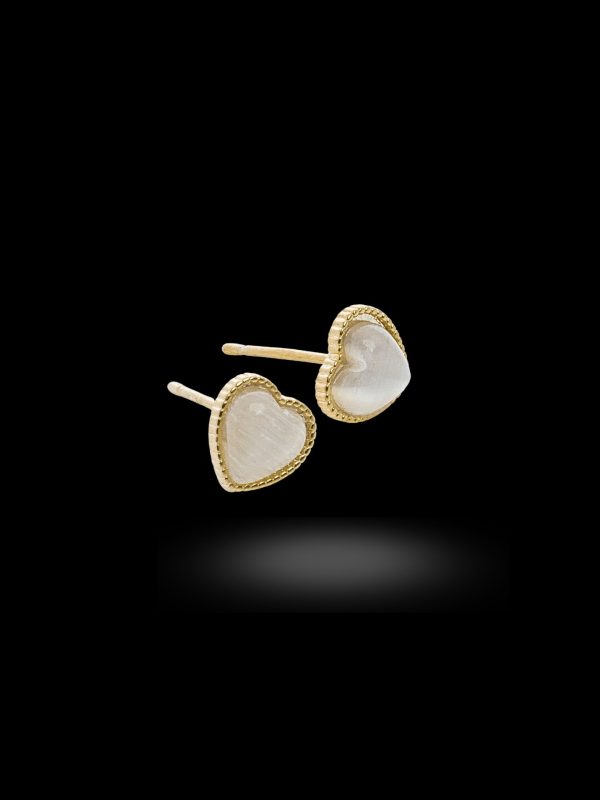 - Χρυσό σταθερό σκουλαρίκι σε σχήμα καρδιάς και φίλντισι