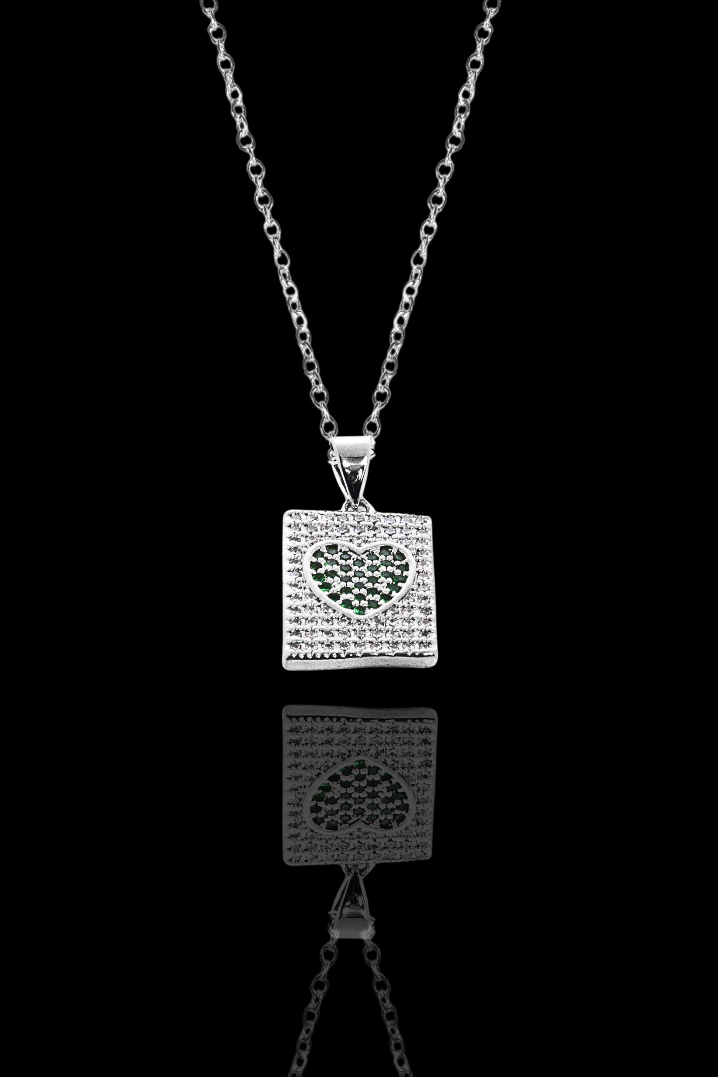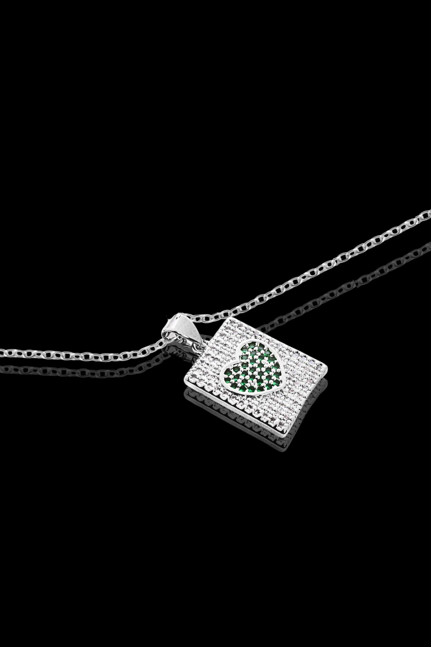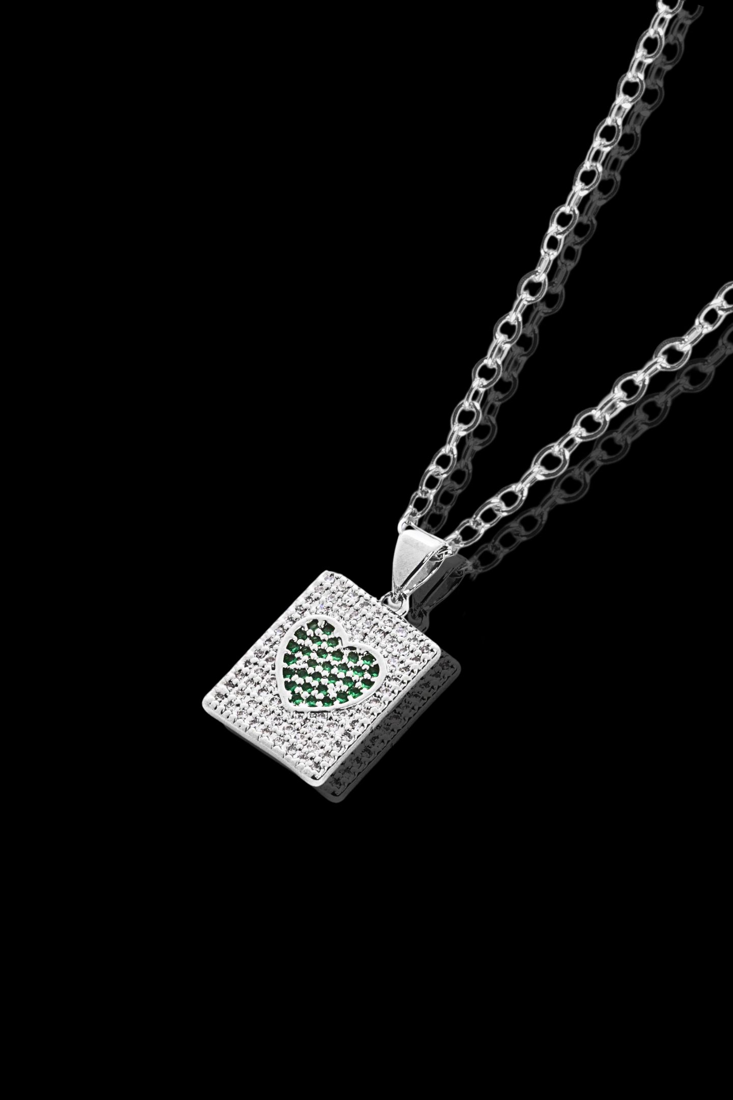 - Κοσμείται με λευκά ζιργκόν περιμετρικά και πράσινα στο κέντρο της καρδιάς, προσφέροντας μια μοναδική λάμψη και κομψότητα