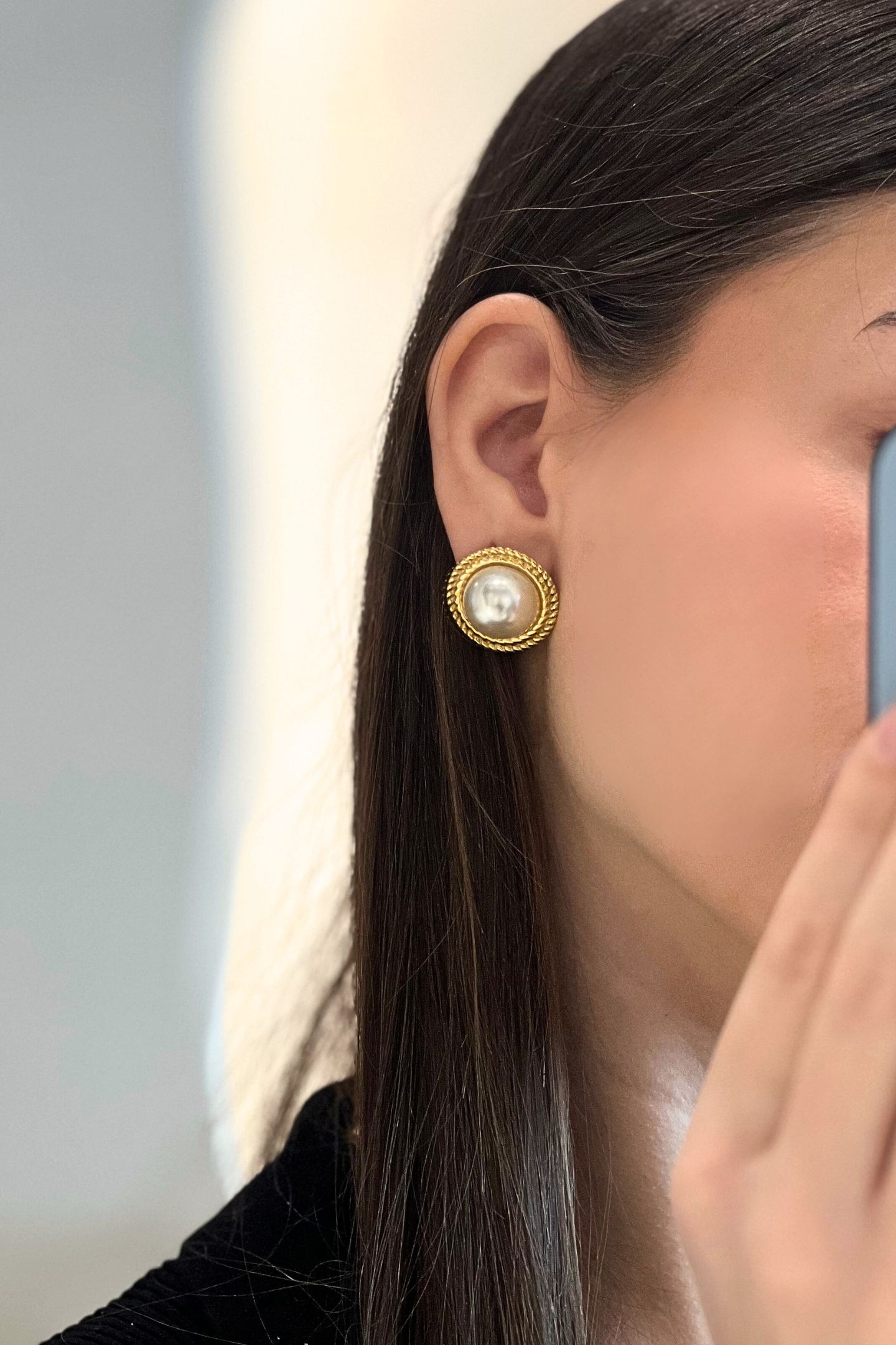 - Vintage στρόγγυλο σκουλαρίκι με μαργαριτάρι στο κέντρο του