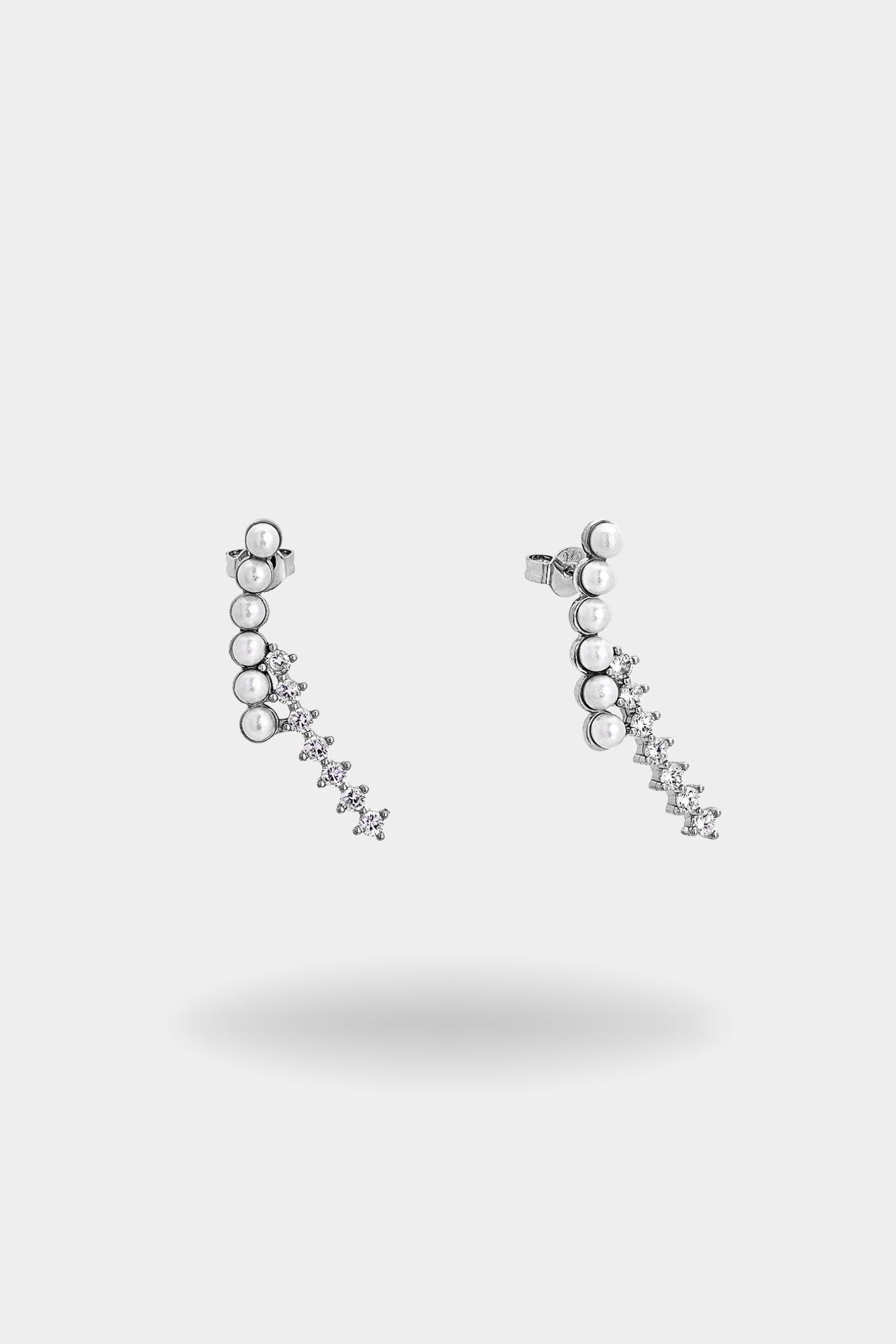 Σκουλαρίκια κατασκευασμένα από ασήμι 925 με κυβική ζιρκόνια και μαργαριτάρια