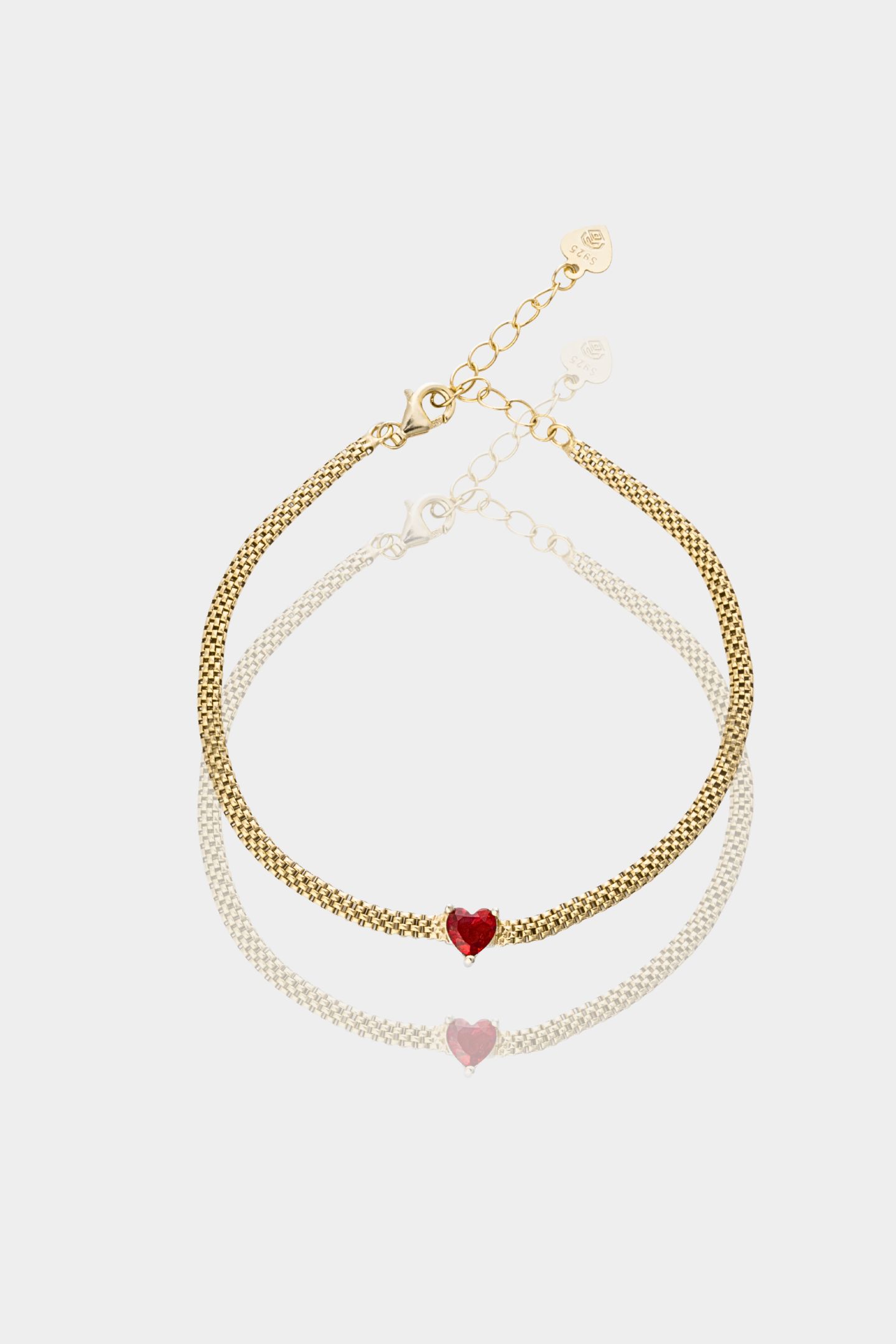 - Βραχιόλι με γεμάτη τύπου snake αλυσίδα και ένα κεντρικό στοιχείο σε σχήμα καρδιάς
