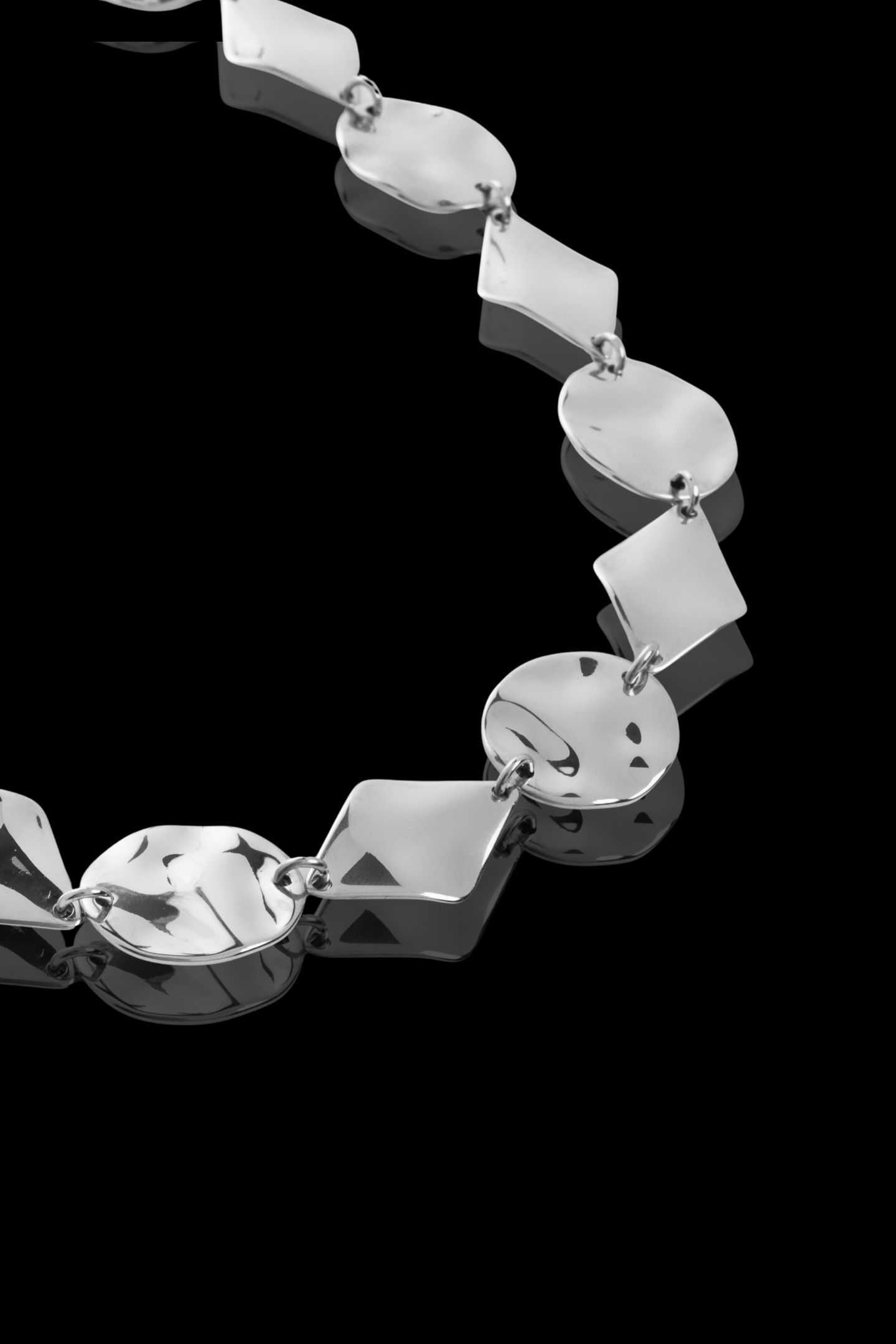 - Κολιέ με την μορφή ενωμένων κυκλικών και τριγωνικών στοιχείων