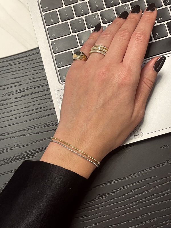 - Λεπτό βραχιόλι με απαλή κίνηση και διακριτική λάμψη, σχεδιασμένο να φοριέται όλες τις ώρες της ημέρας
