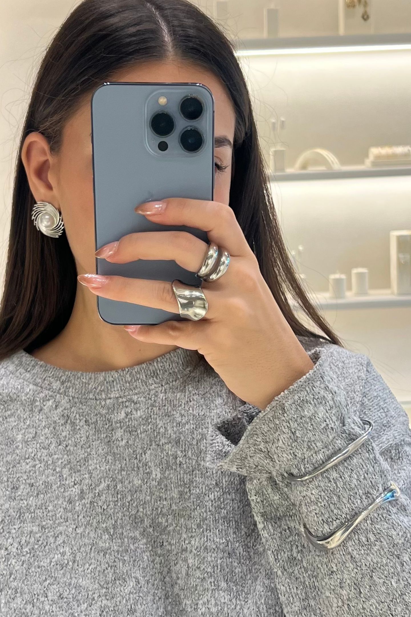 - Ασύμμετρη χειροπέδα με γυαλιστερή όψη που μπορεί να φορεθεί σε συνδυασμό ή και solo