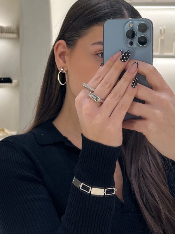 - Ταιριάζει με μοντέρνα δαχτυλίδια ή minimal κολιέ, ώστε το mix design να παραμένει στο επίκεντρο