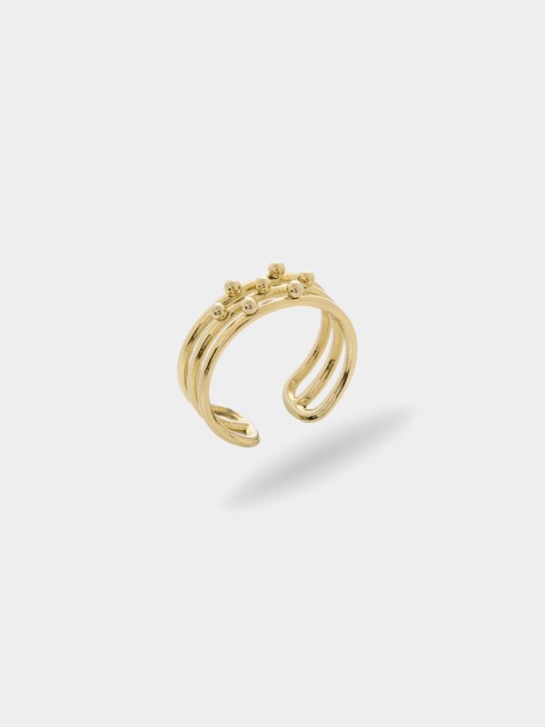 - Δαχτυλίδι με μικρές, χρυσές διακριτικές μπίλιες στο πάνω μέρος του