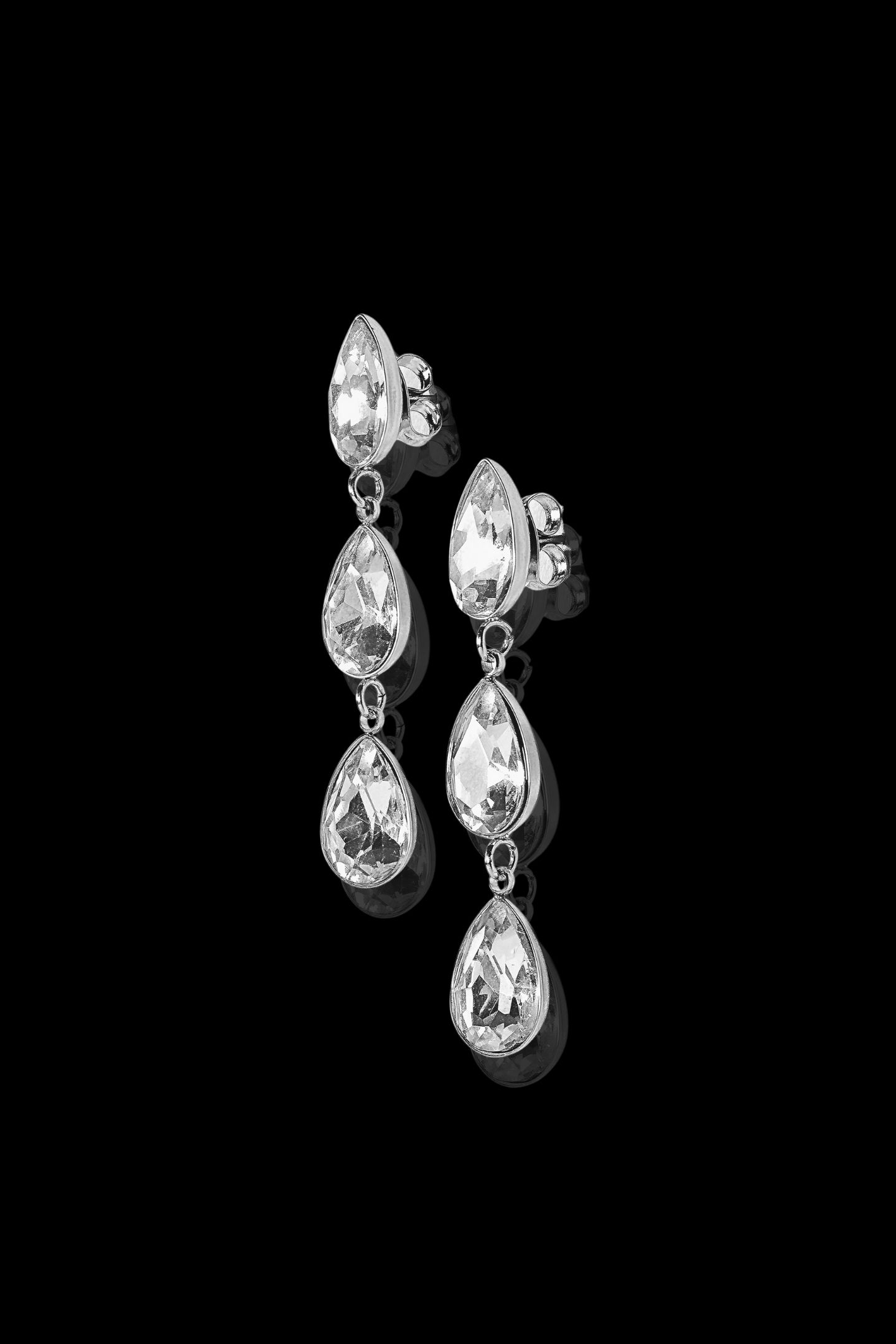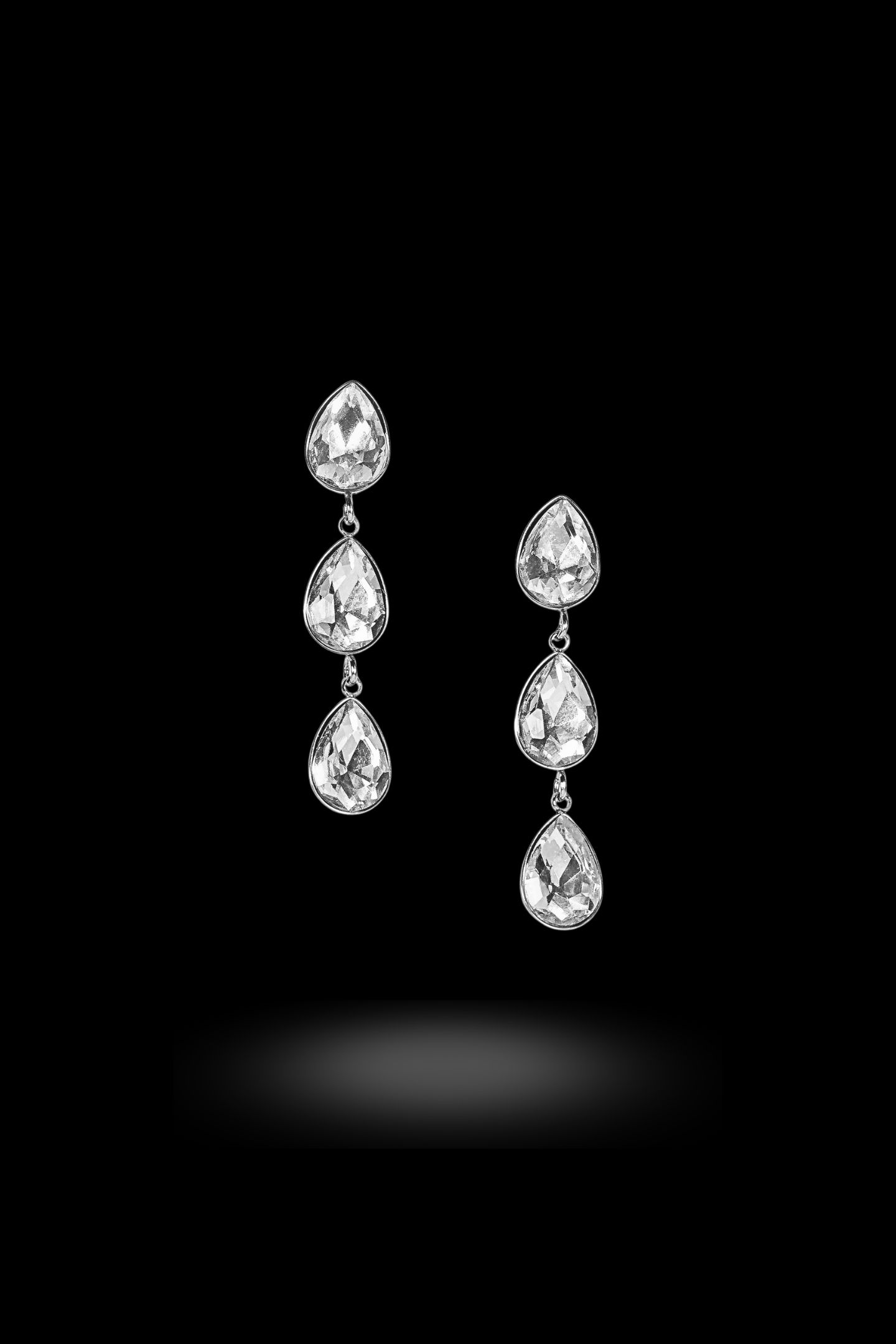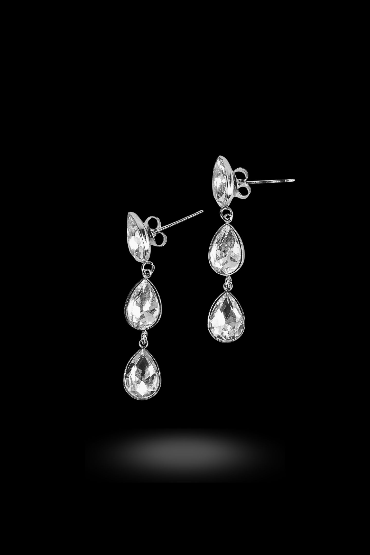 - Κοσμείται από τρία κρεμαστά στοιχεία με λευκή κυβική ζιρκόνια