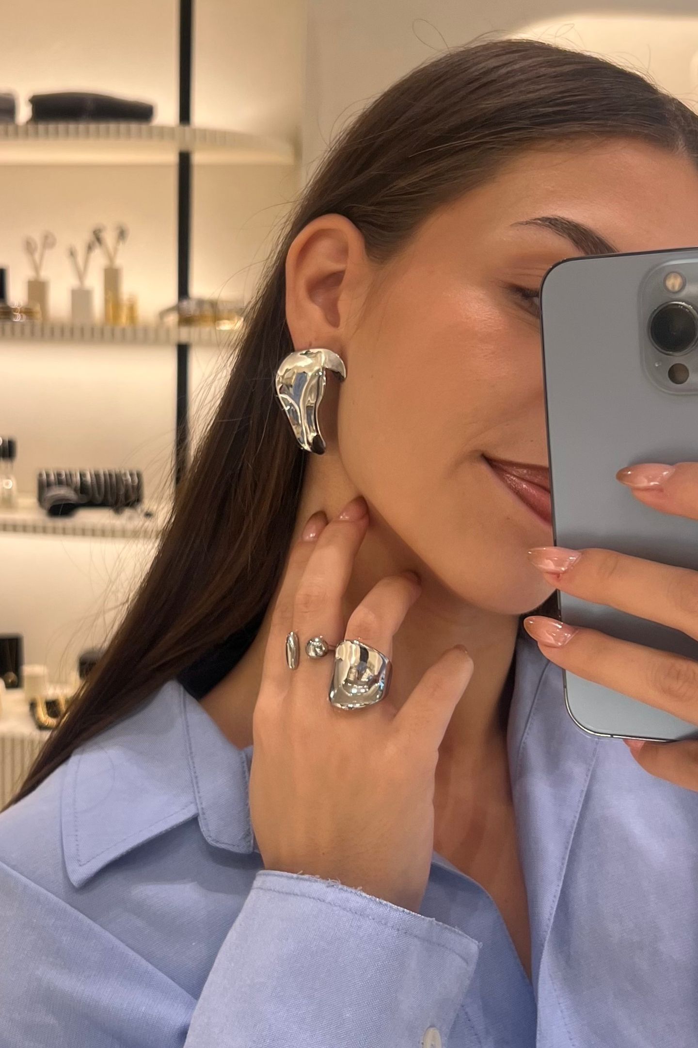 - Ασύμμετρο γυαλιστερό σκουλαρίκι