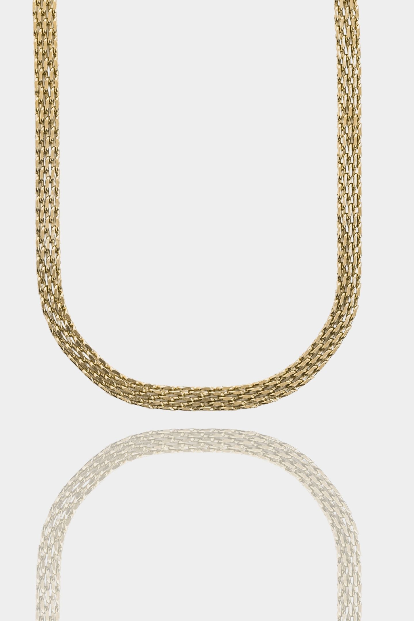 - Κολιέ με λεπτή αλυσίδα και επτά κινούμενα οβάλ στοιχεία που δημιουργούν ένα παιχνίδισμα