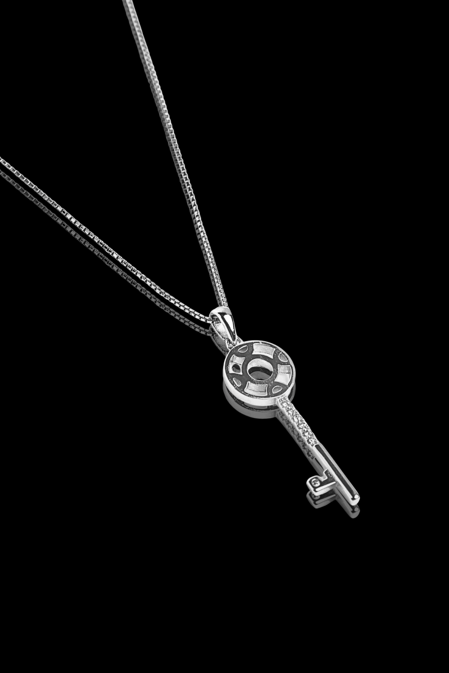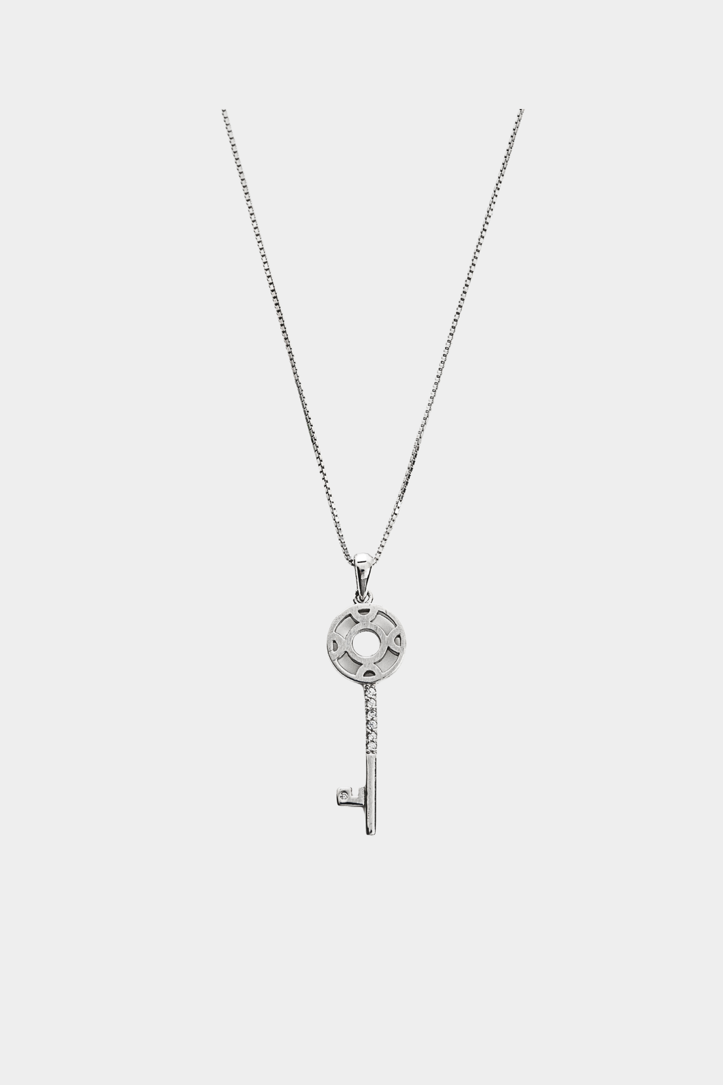 - Κολιέ με λεπτή αλυσίδα και κρεμαστό στοιχείο κλειδί με λευκά ζιρκόνια