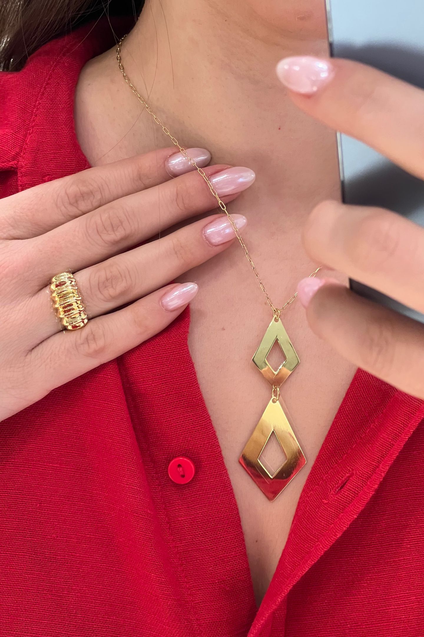 - Κολιέ με ιδιαίτερη αλυσίδα και δύο κρεμαστά λεία στοιχεία σε σχήμα ρόμβου