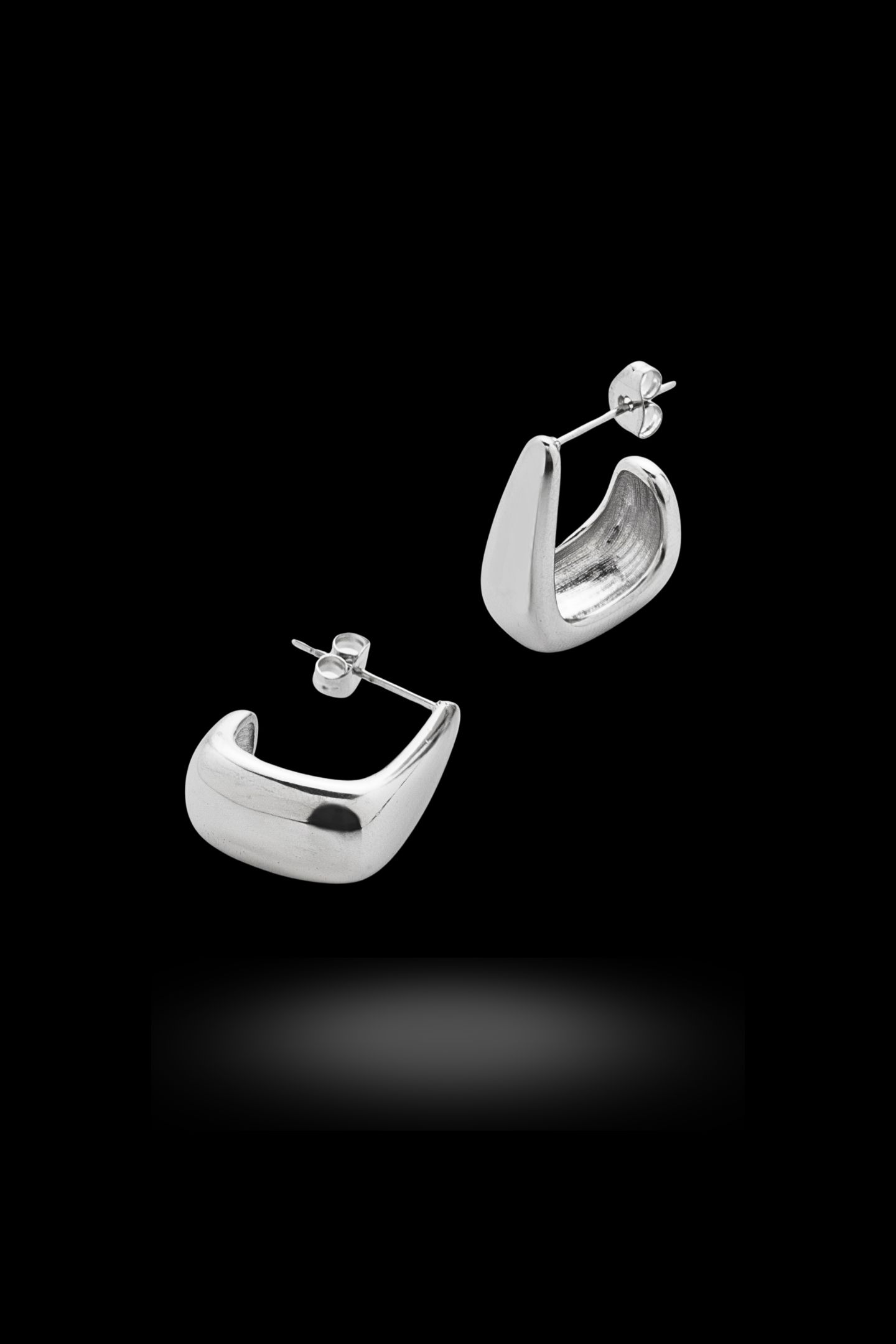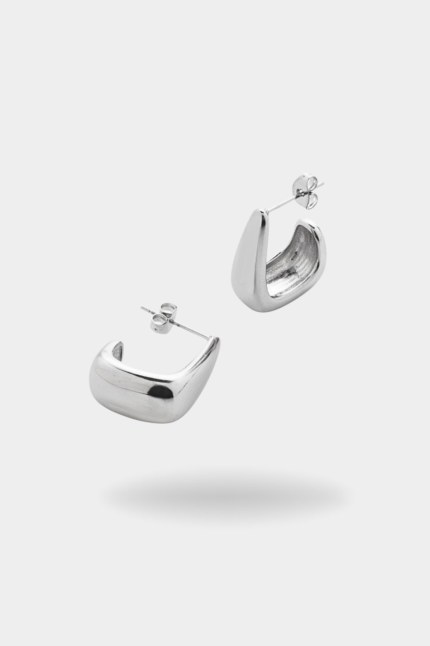 - Τετράγωνο σκουλαρίκι με στρογγυλεμένες γωνίες και γυαλιστερή όψη