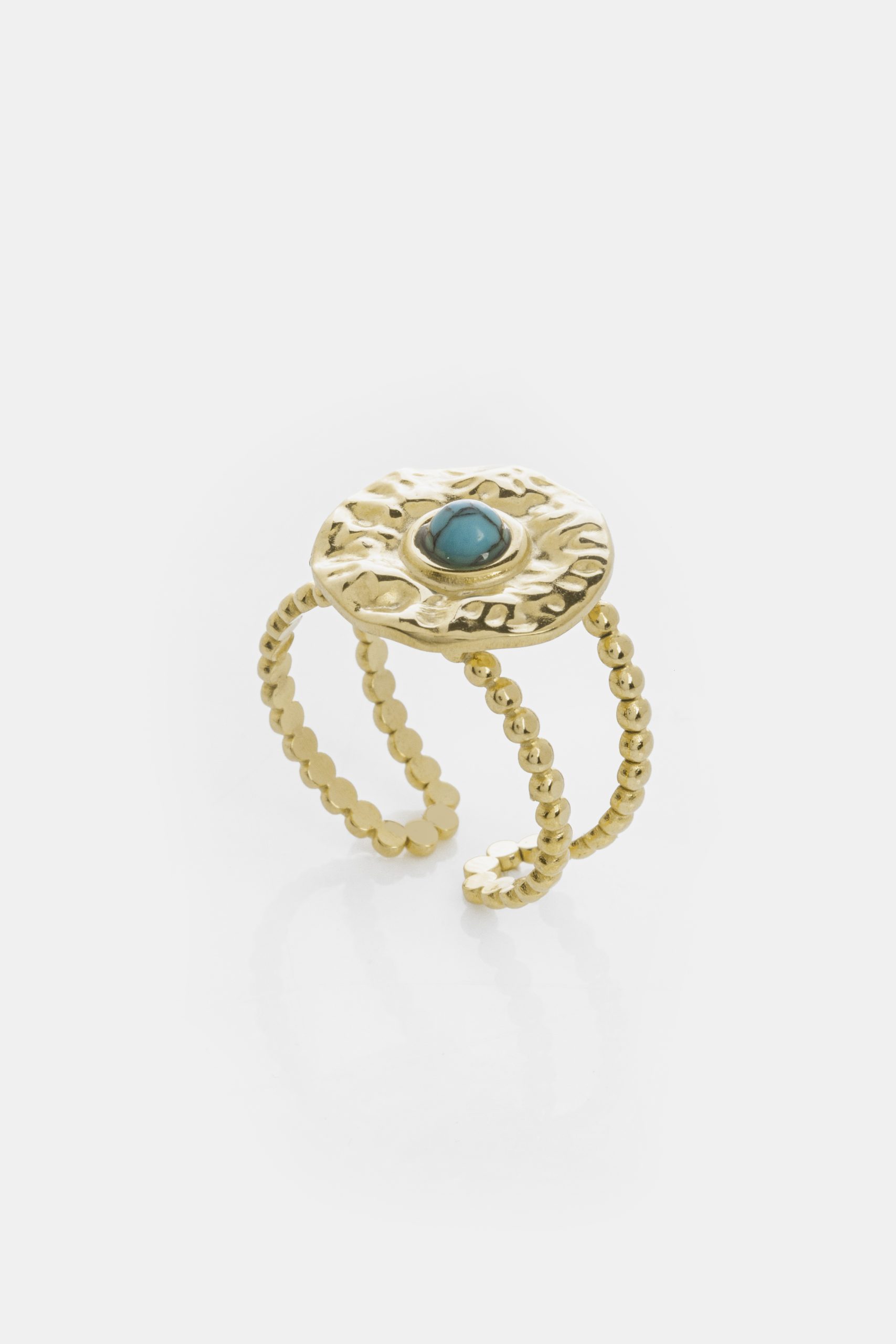 - Σφυρήλατο στρόγγυλο δαχτυλίδι με γαλάζια πέτρα στη μέση του