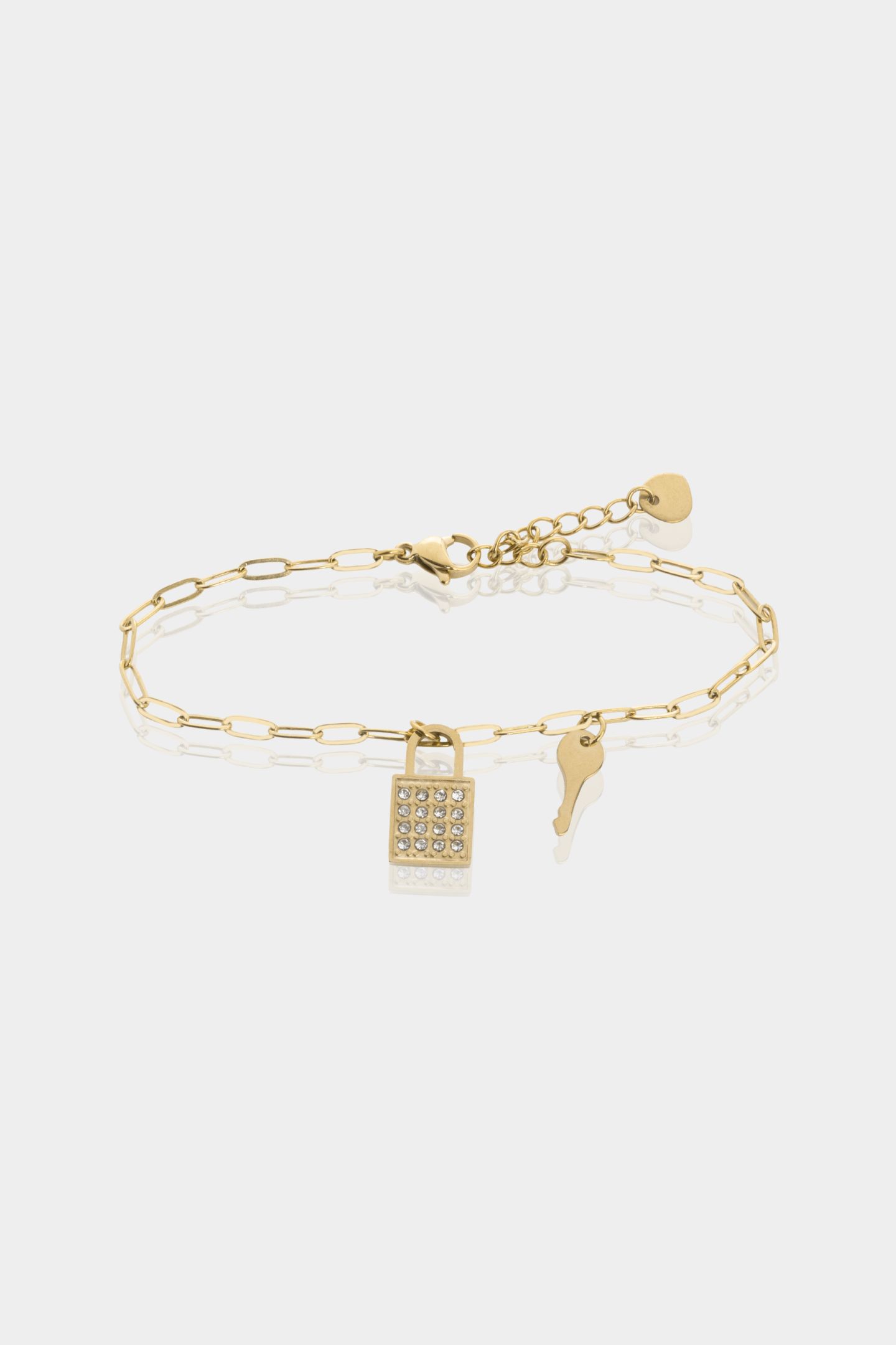 - Τα charms είναι μία κρεμαστή καρδιά με ζιργκόν και ένα κλειδί