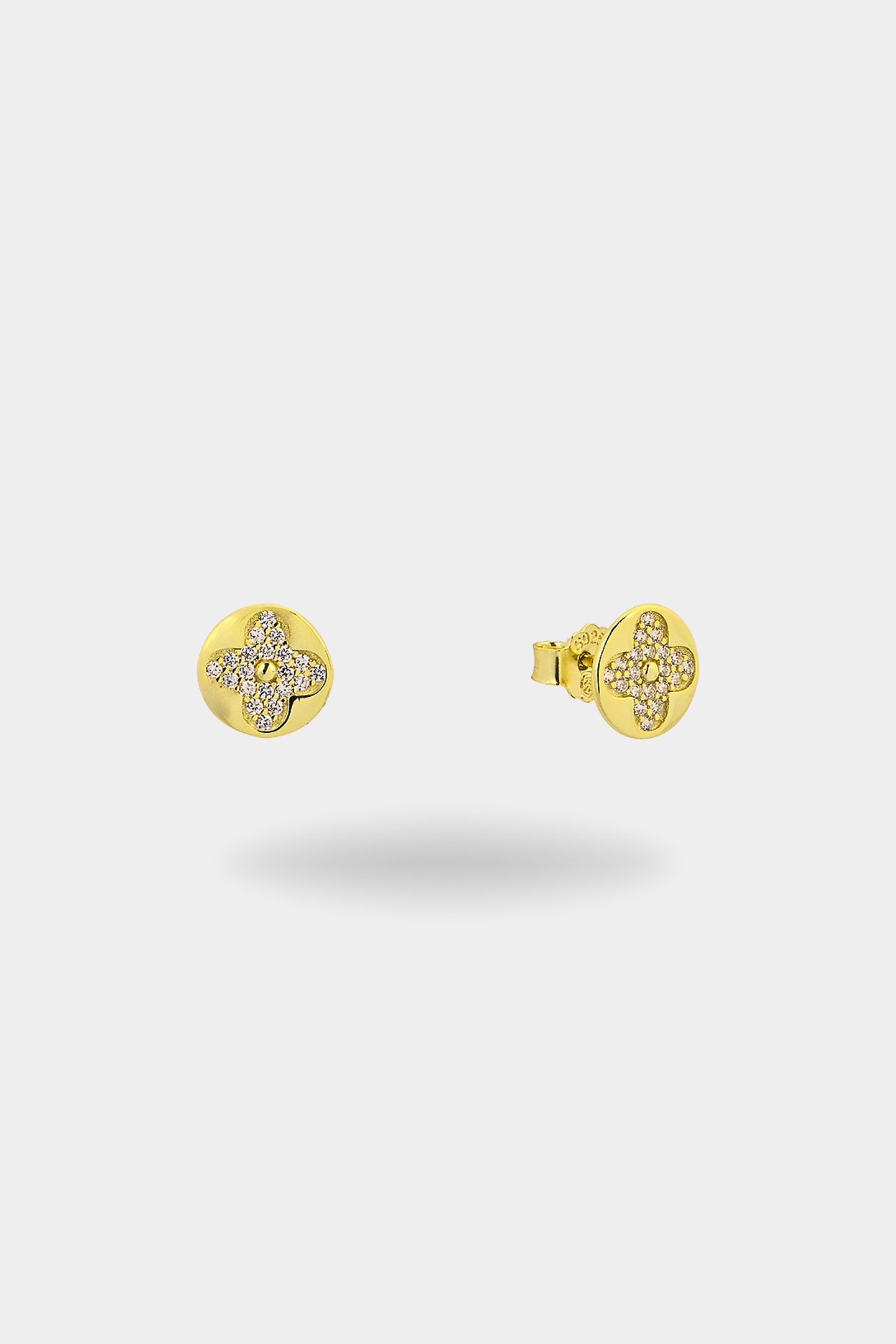 - Σταθερό, επιχρυσωμένο σκουλαρίκι που εφαρμόζει διακριτικά πάνω στο αυτί, διακοσμημένο με ένα κομψό μοτίφ λουλουδιού στο κέντρο