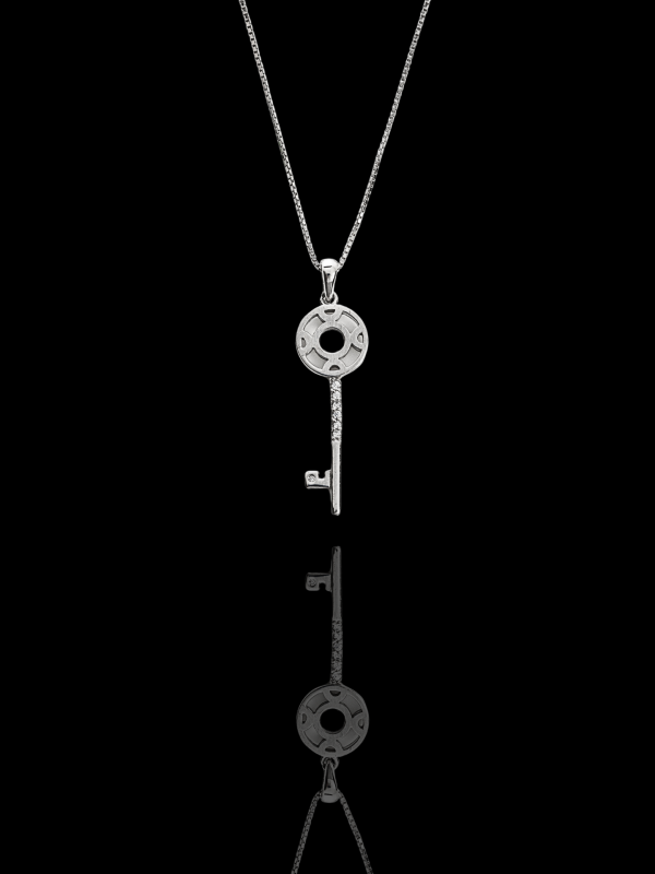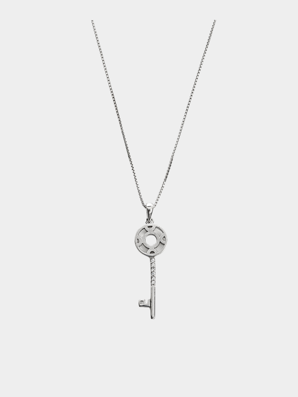 - Κολιέ με λεπτή αλυσίδα και κρεμαστό στοιχείο κλειδί με λευκά ζιρκόνια