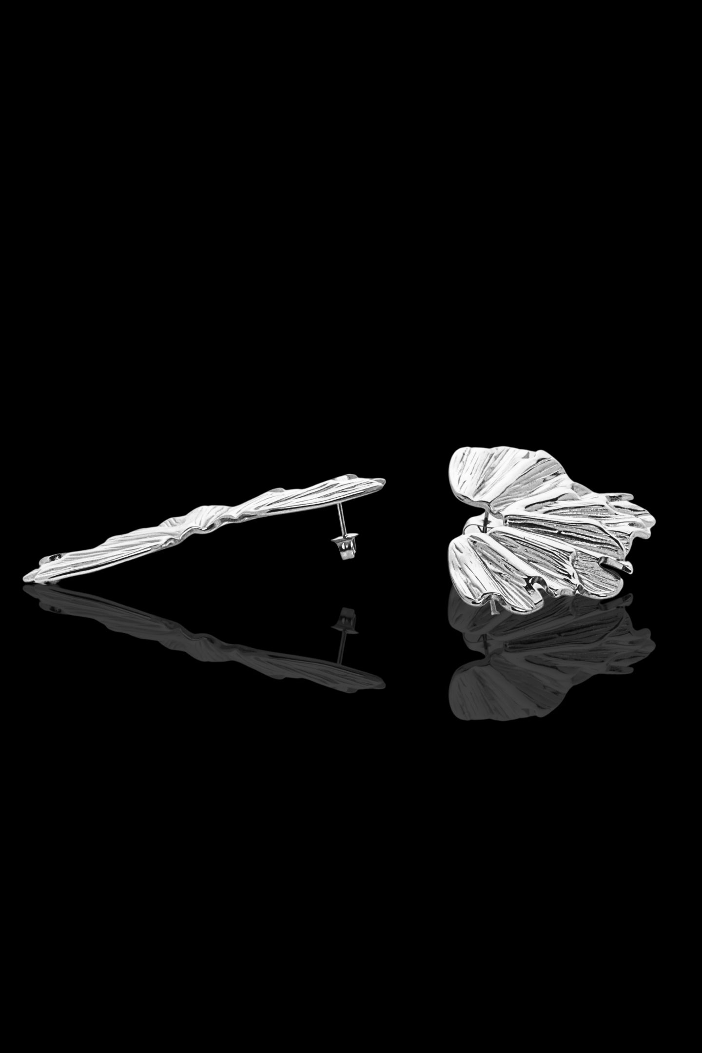 - Ασύμμετρο γυαλιστερό σκουλαρίκι σε σχήμα πετάλλου