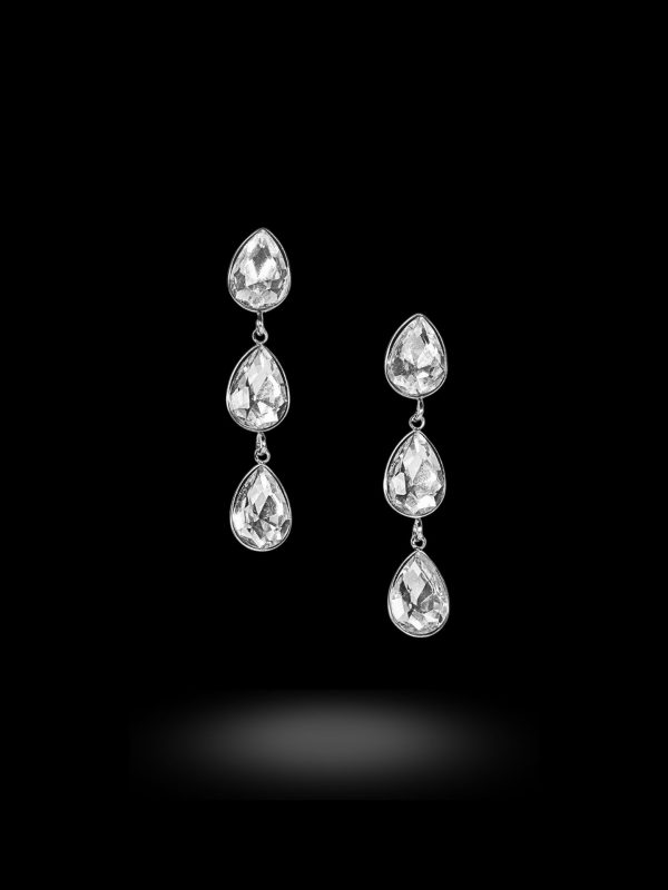 - Κοσμείται από τρία κρεμαστά στοιχεία με λευκή κυβική ζιρκόνια
