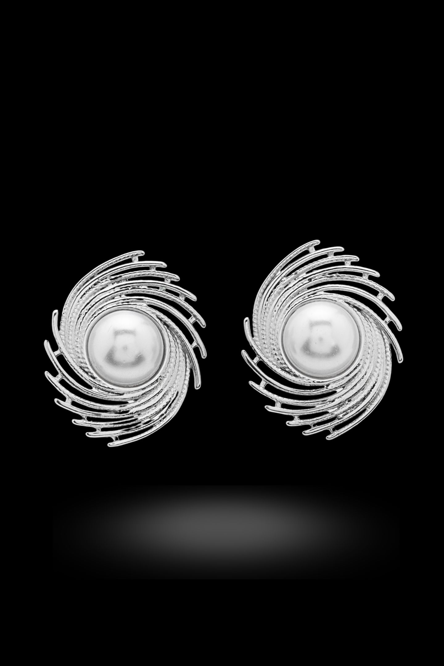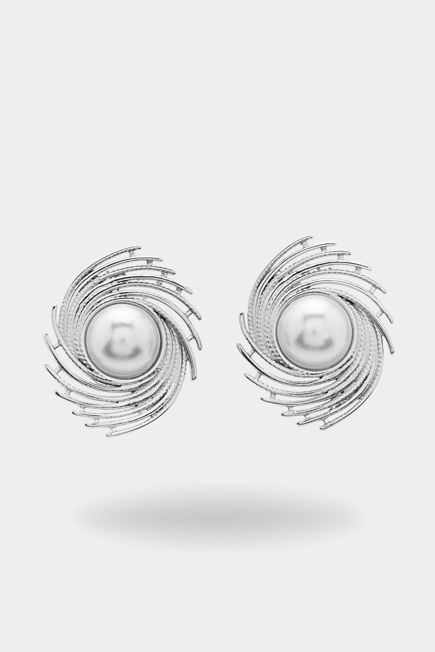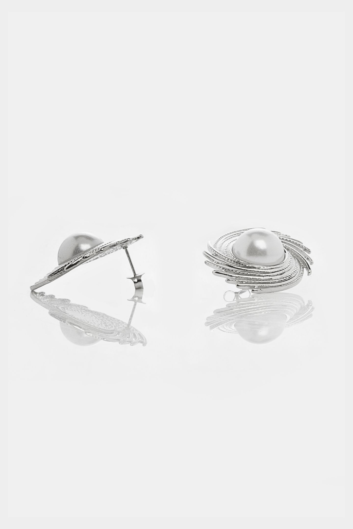 - Σκουλαρίκι με ακανόνιστες ραβδώσεις και λευκό μαργαριτάρι στο κέντρο του