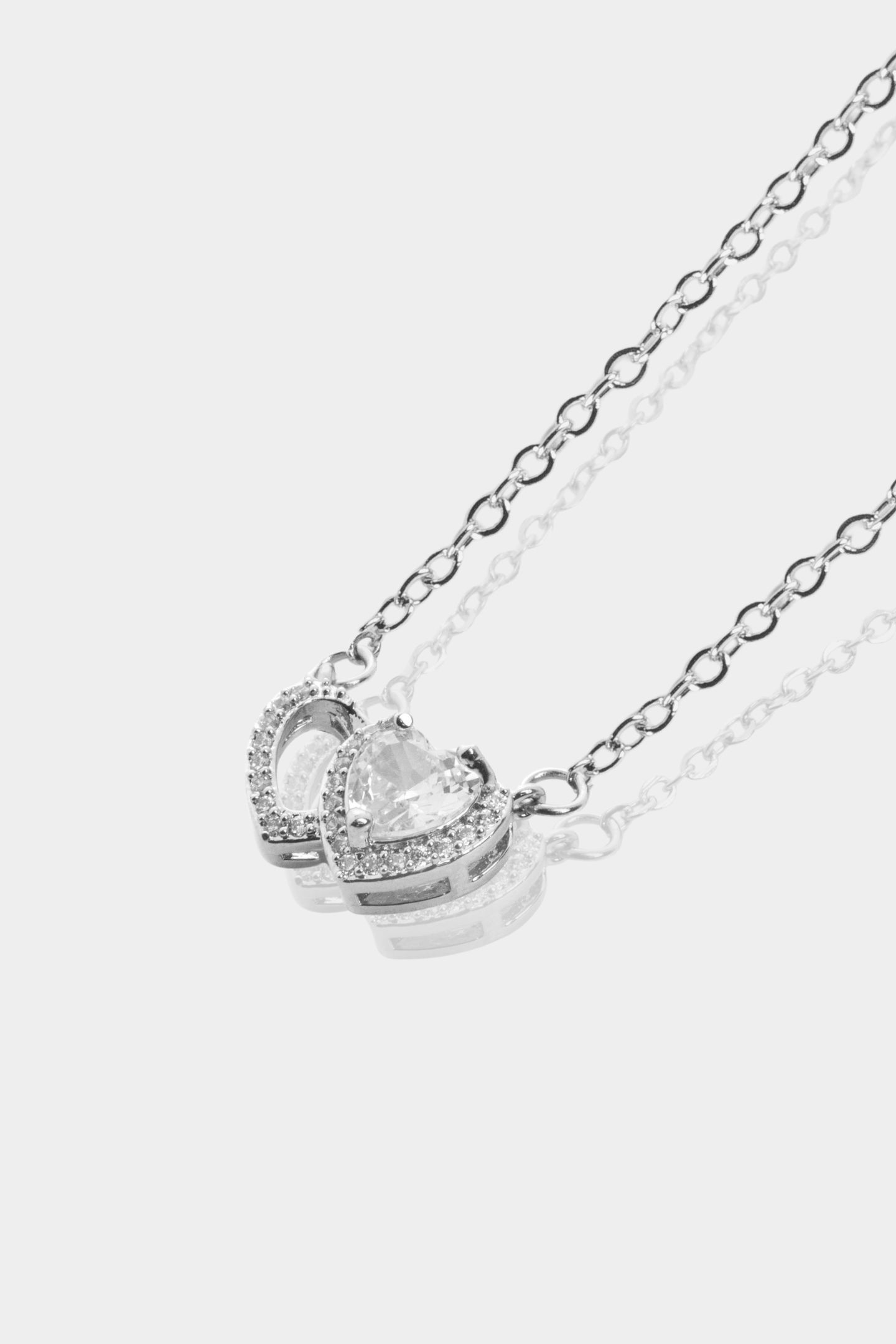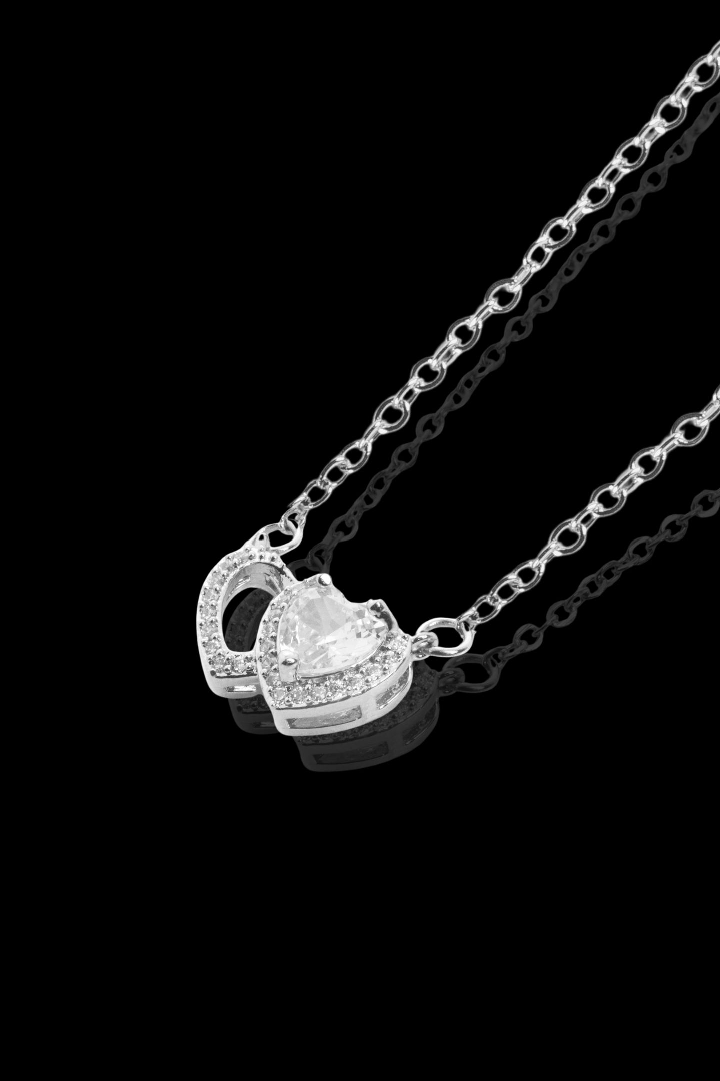- Κολιέ με λεπτή αλυσίδα και κρεμαστό στοιχείο με διπλή καρδία