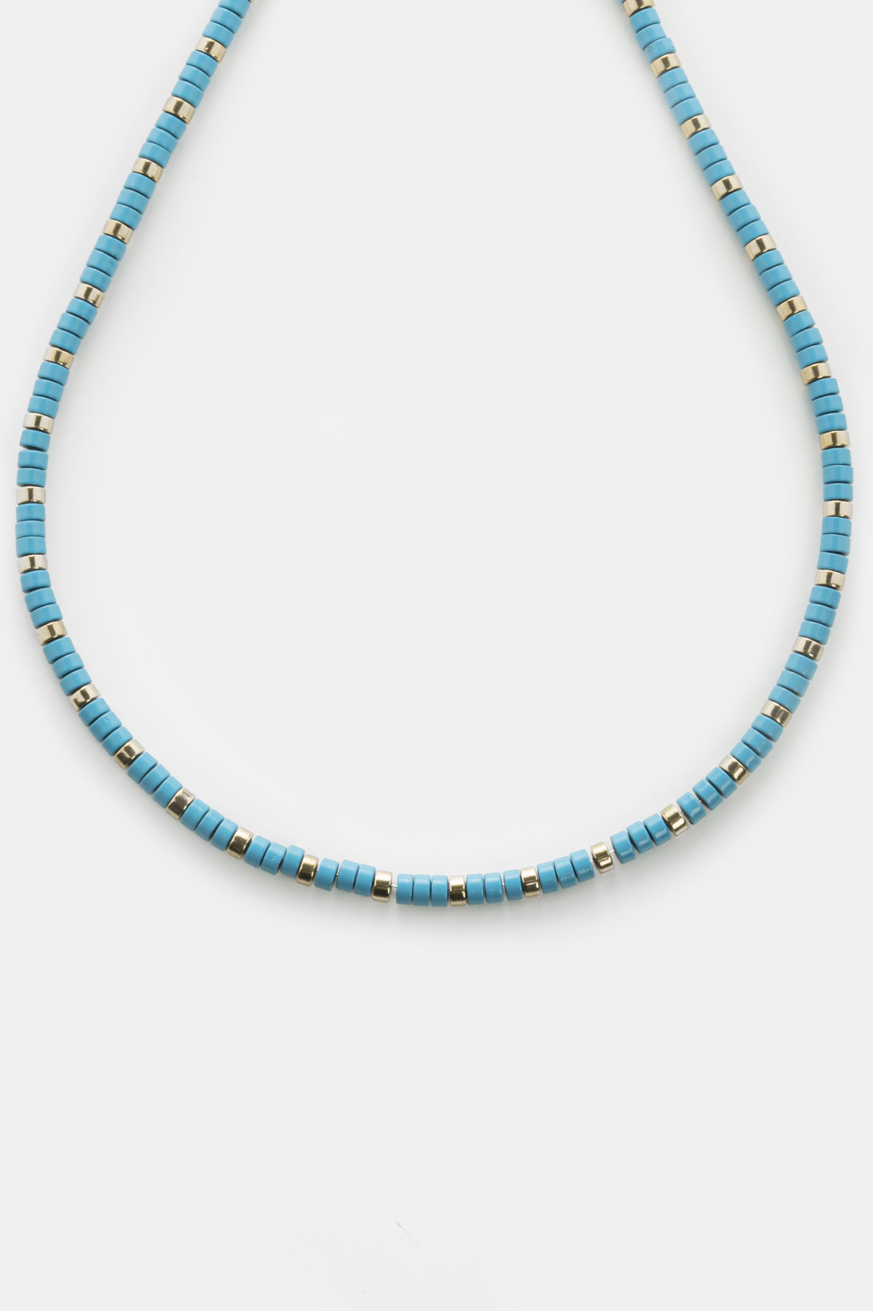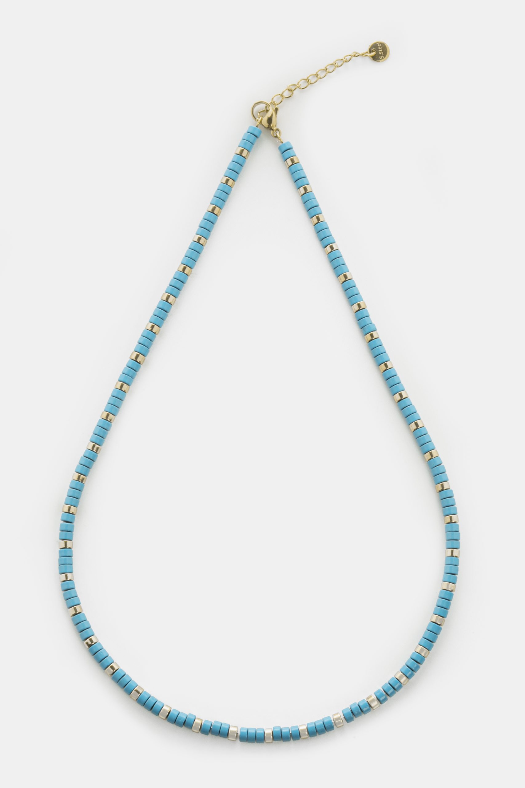 Κολιέ κατασκευασμένο από χειρουργικό ατσάλι (316L) με μπλέ και χρυσές χάντρες
