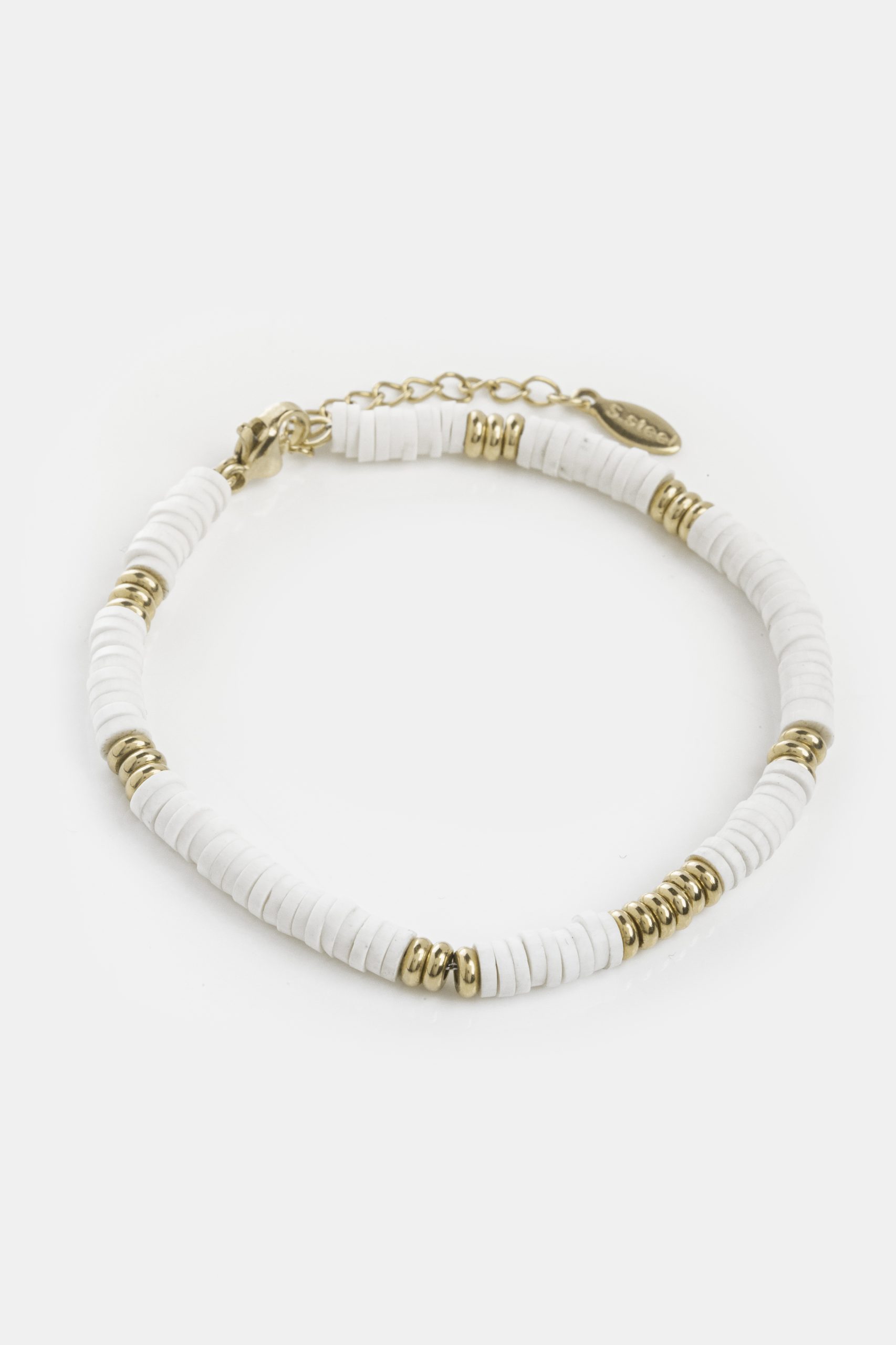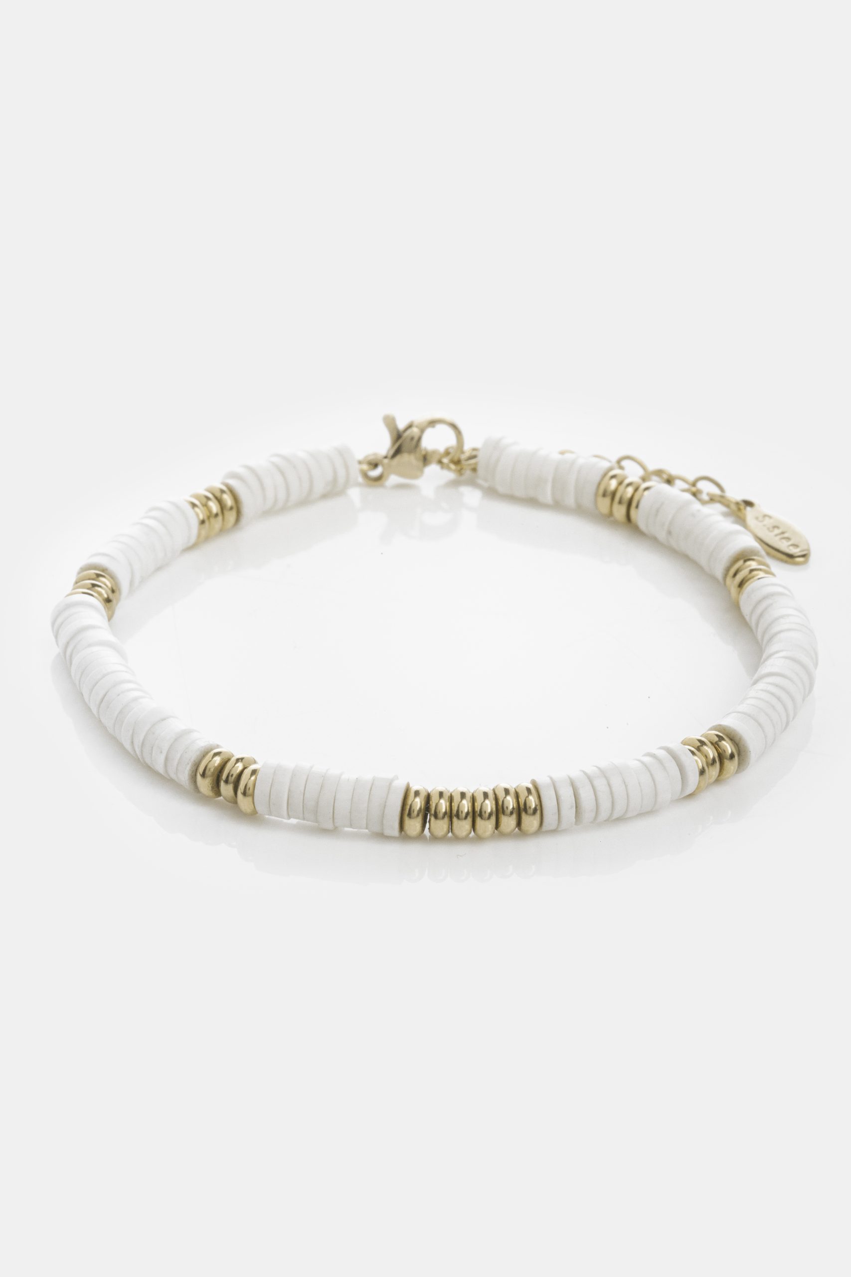 - Βραχιόλι από λευκές χάντρες και στοιχεία από ανοξείδωτο ατσάλι