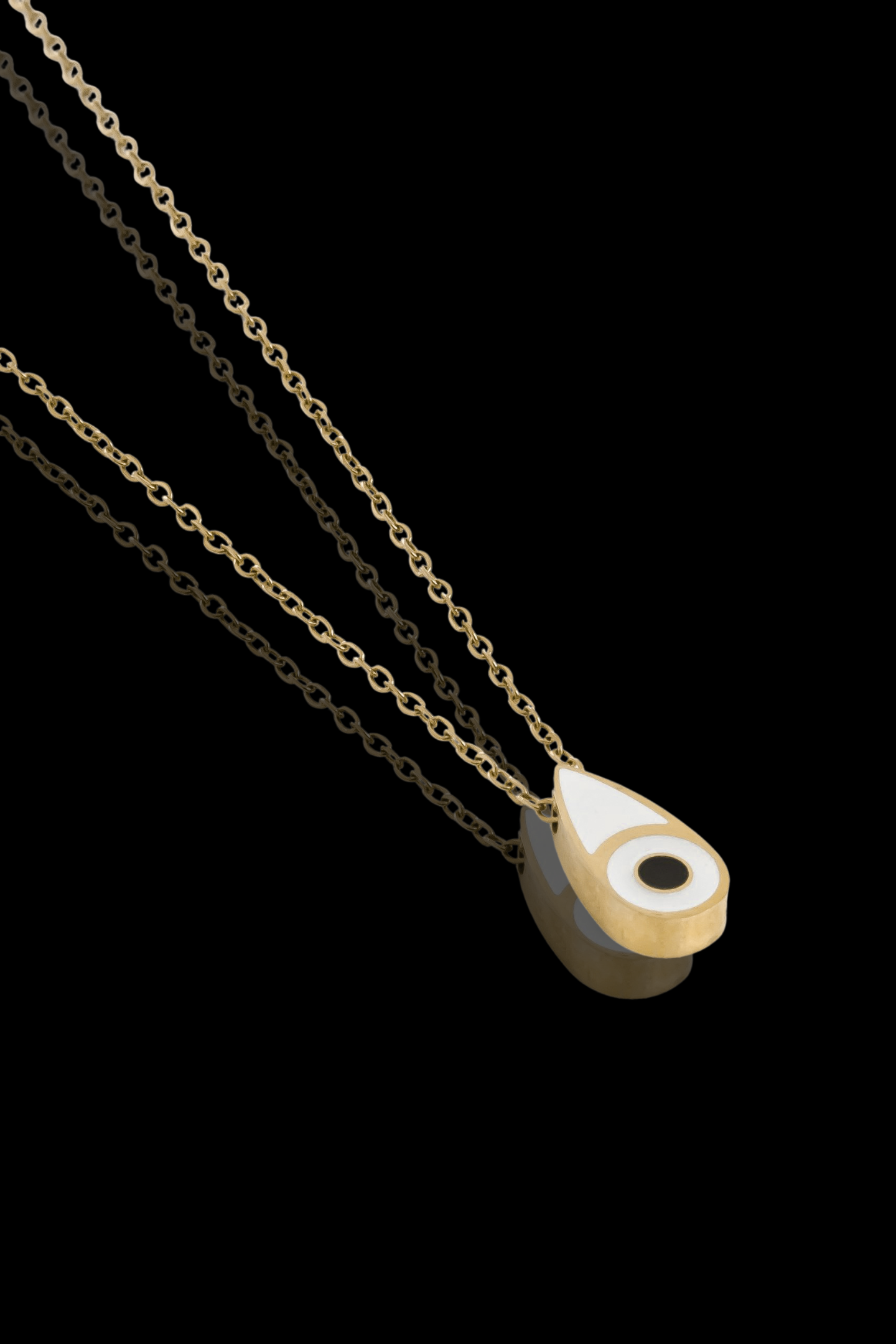 - Κολιέ με κρεμαστό ατσάλινο μάτι σε σχήμα σταγόνας με επιχρύσωση 24k