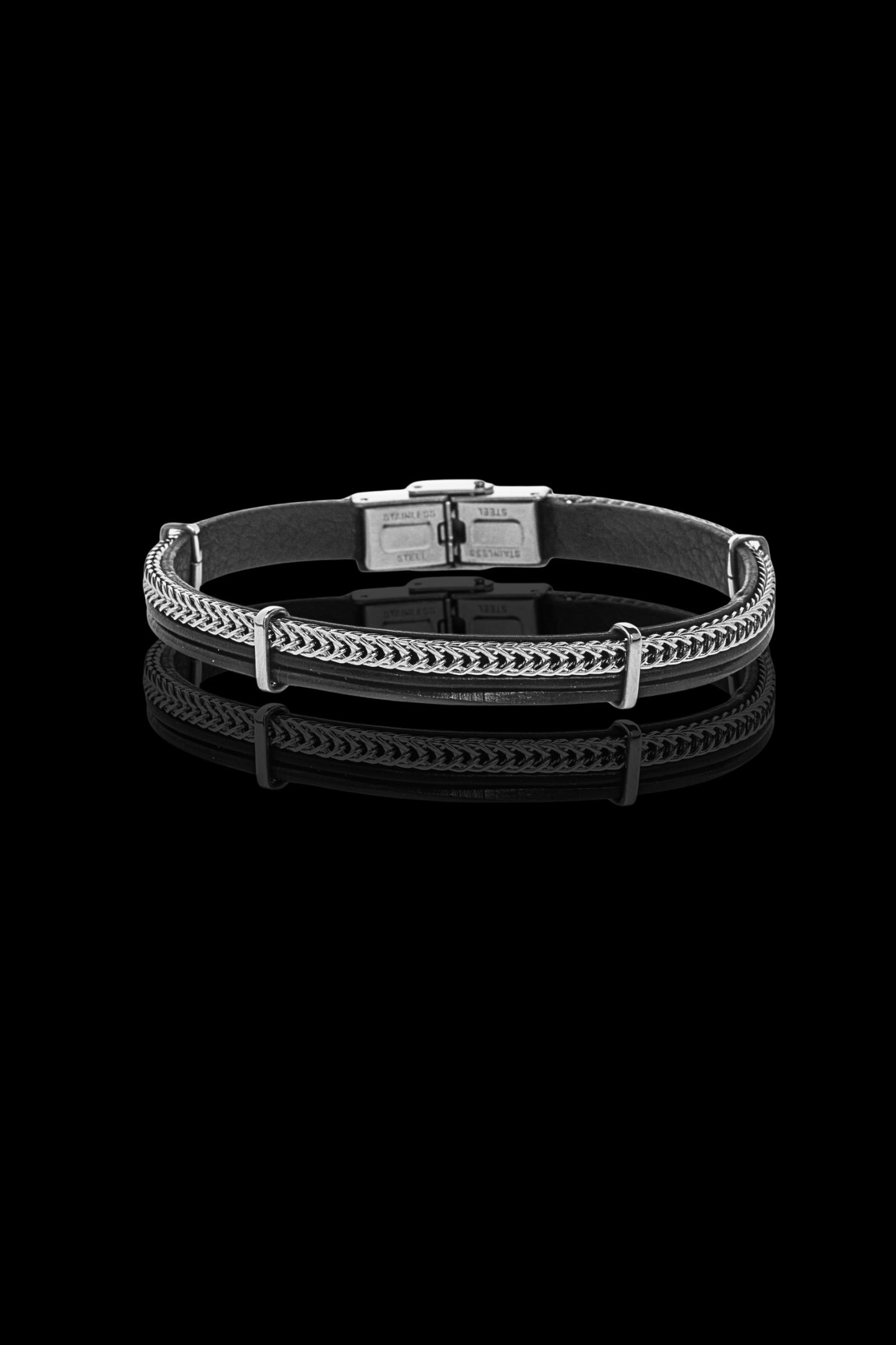- Ανδρικό βραχιόλι με δέρμα και ατσάλινα στοιχεία